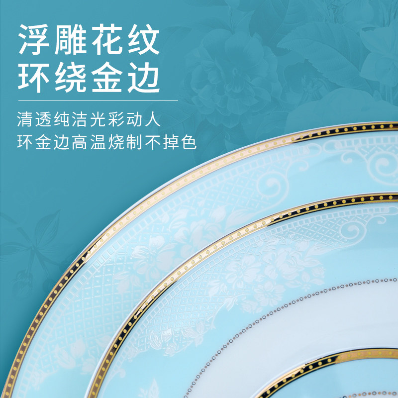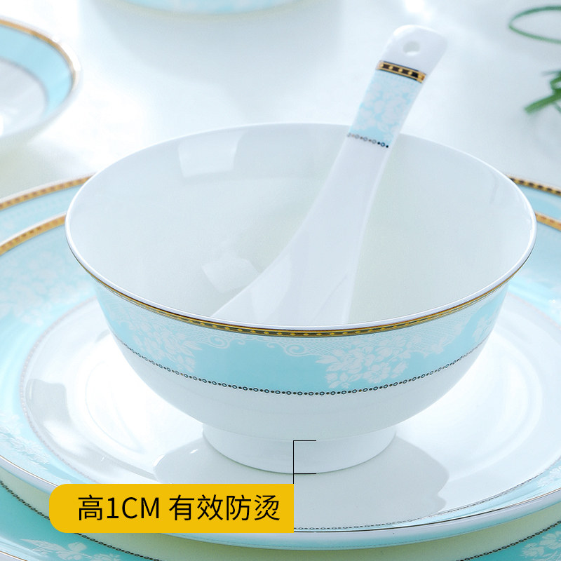 景德镇碗碟套装家用轻奢乔迁餐具套装碗盘骨瓷釉下彩中式简约新款