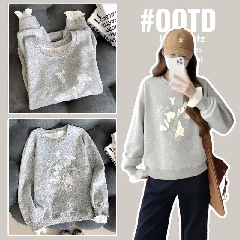 婧麒孕妇装卫衣孕期遮肚子上衣2025新款洋气宽松长袖t恤秋冬季女