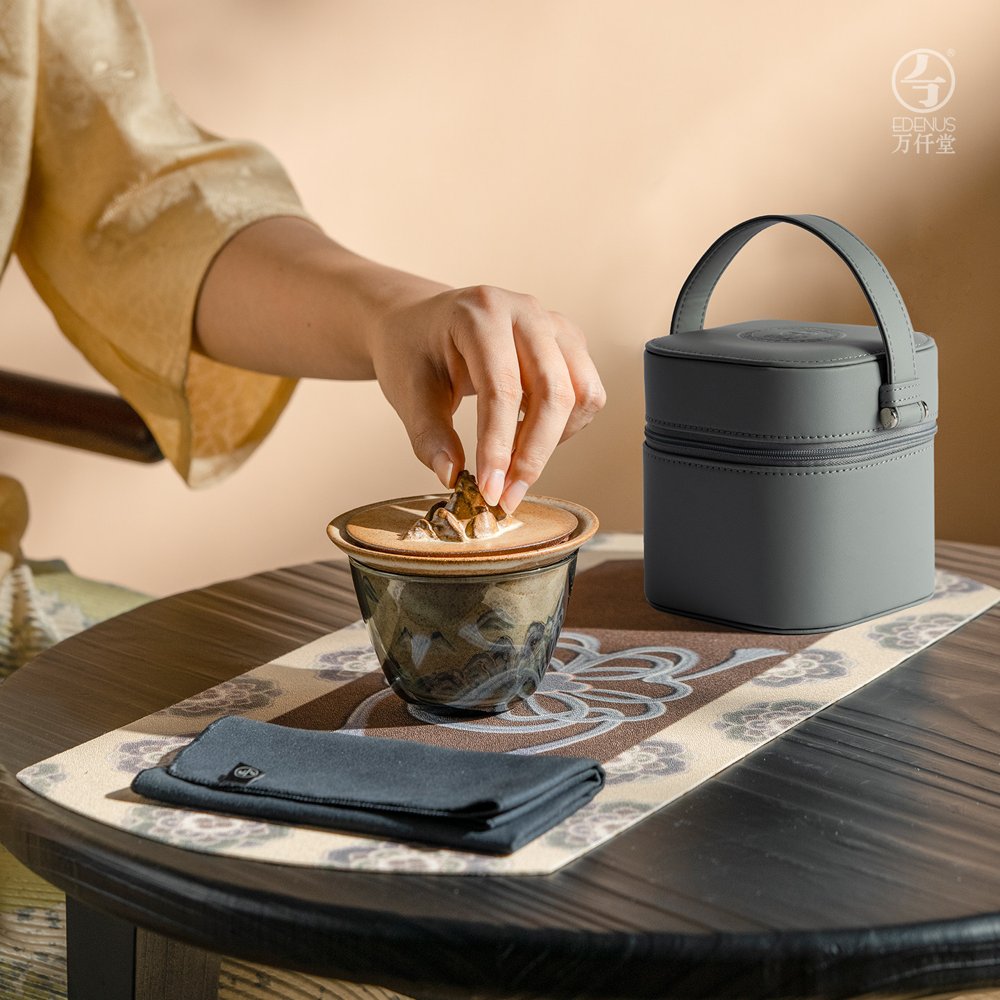 万仟堂敦煌联名旅行茶具套装2025新款便携式茶具旅行套装越过山丘