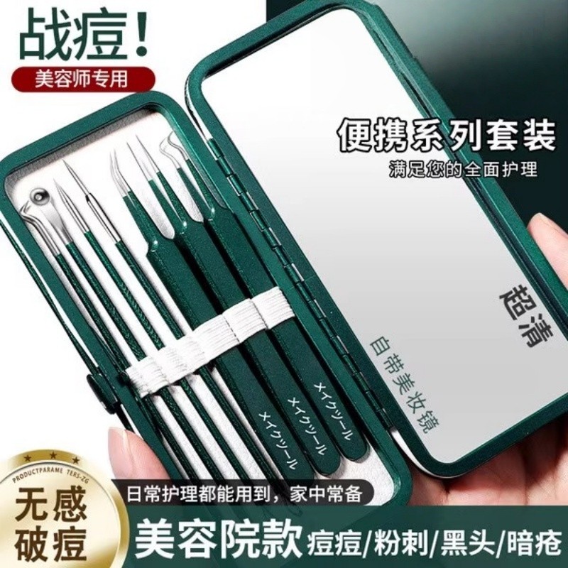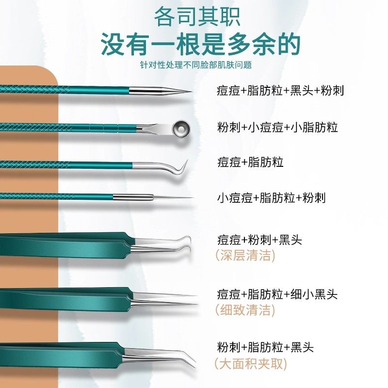 新款粉刺针刮闭口针细胞夹黑头超细挤痘痘工具套装美容院专用镊子