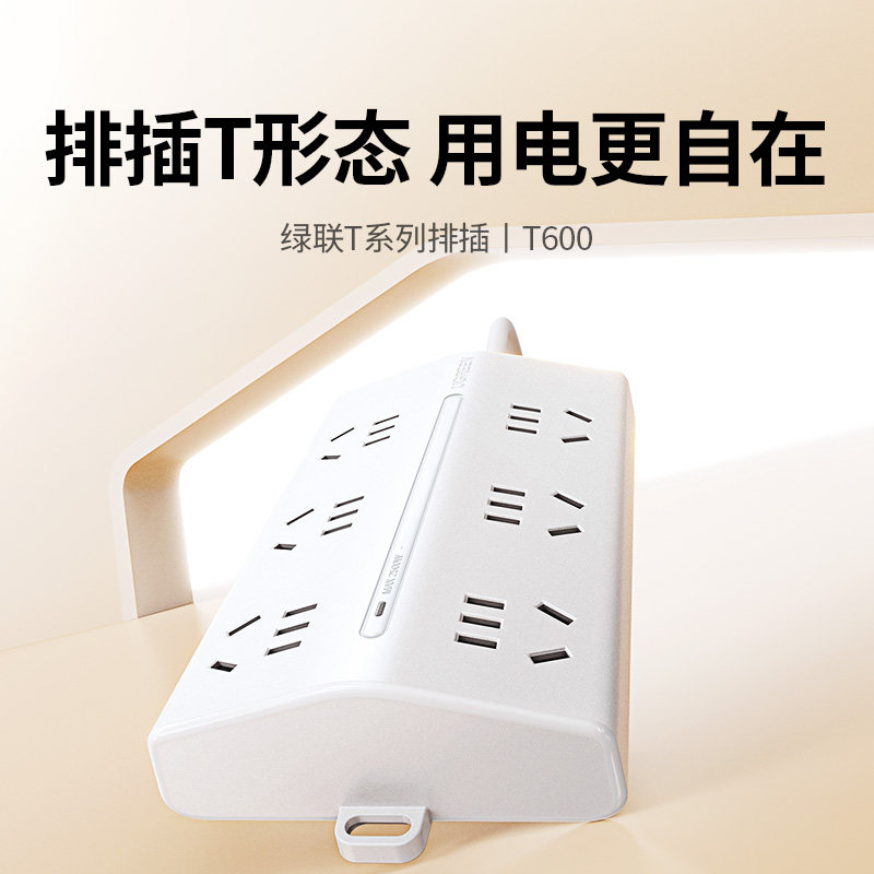 绿联插座多孔插线板电源插座转换器家用分控插排拖接线板国标带线