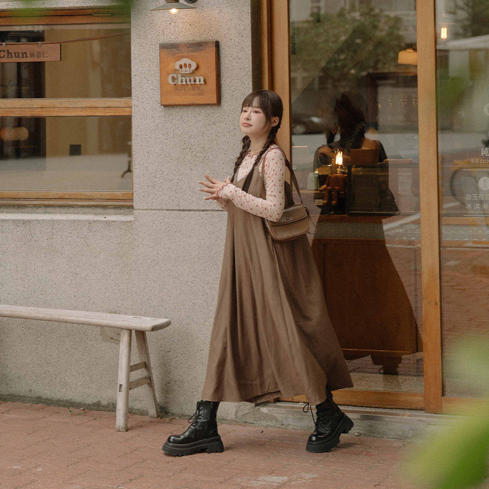 半练带胸垫裙子吊带裙白色连衣裙秋季流行长裙小个子黑色背心裙女