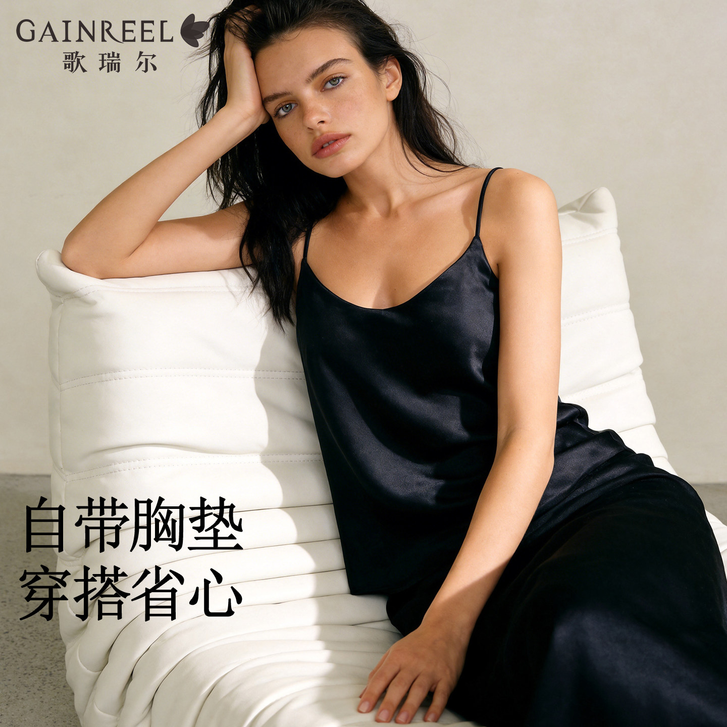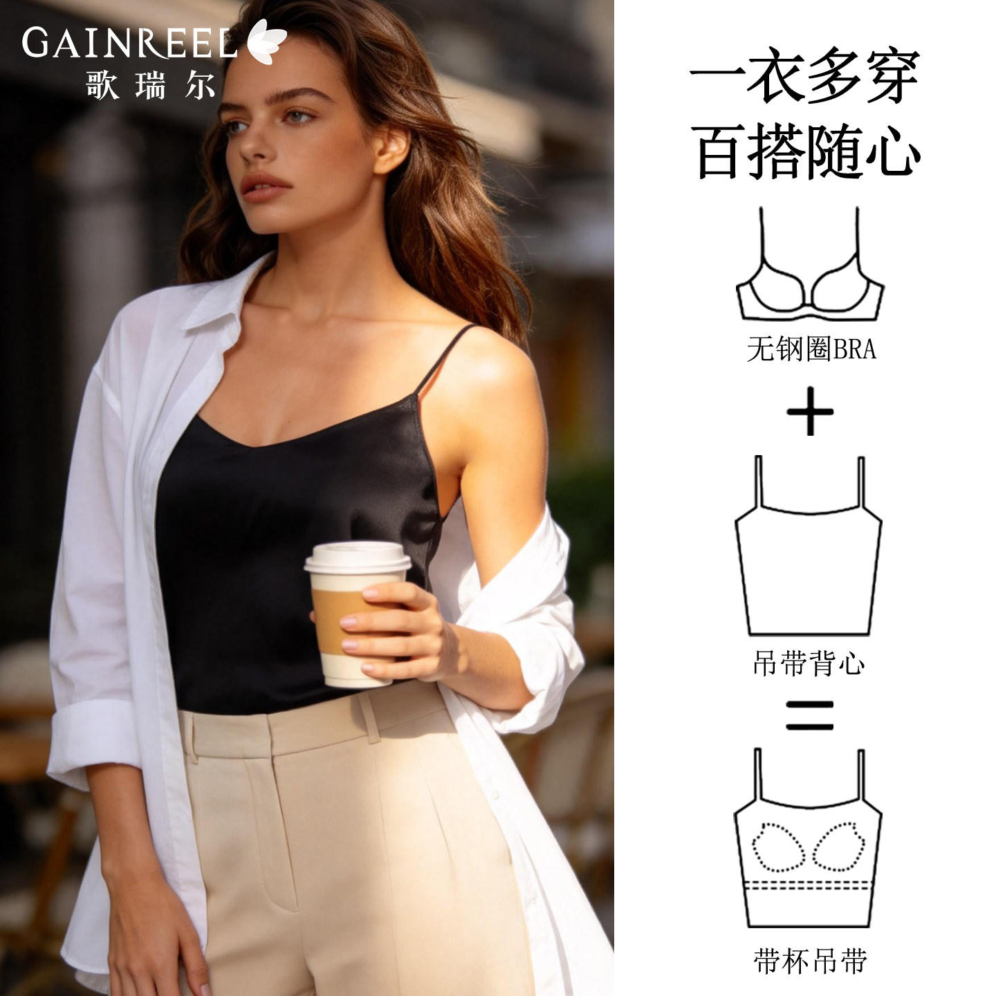 歌瑞尔冰丝感黑色吊带女士背心式文胸一体内搭可外穿白色打底衫