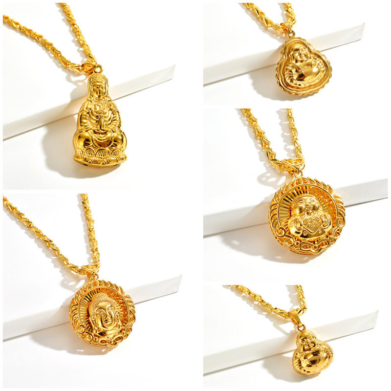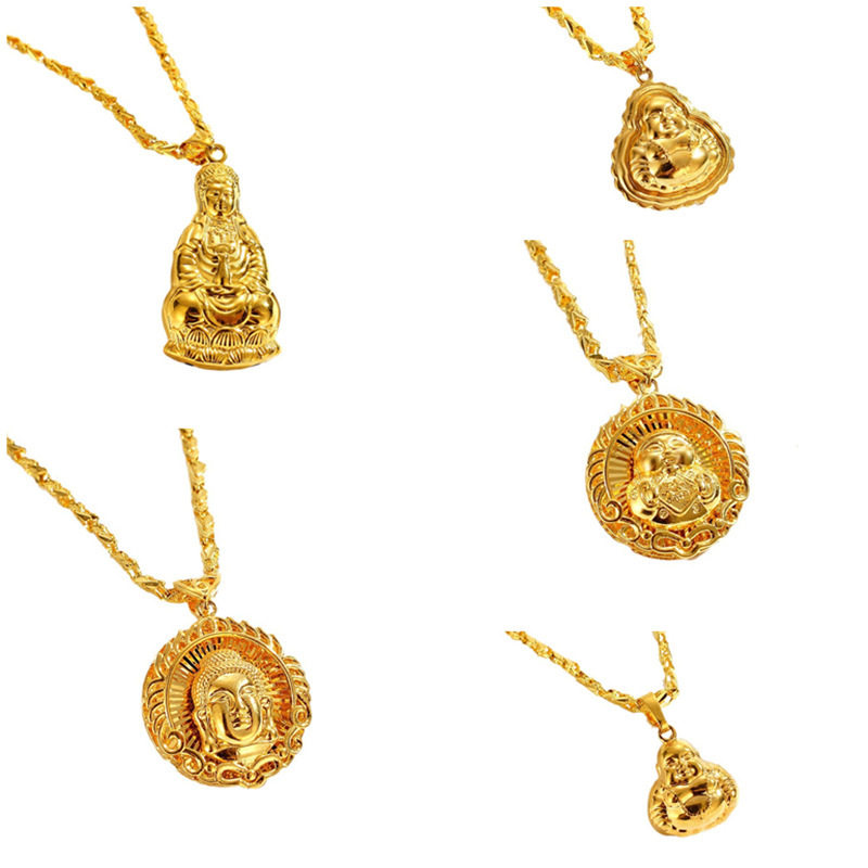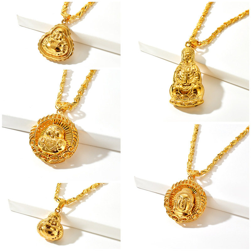 寺庙结缘沙金福娃吊坠观音笑佛毛衣链项坠佛头项链男女通用批发