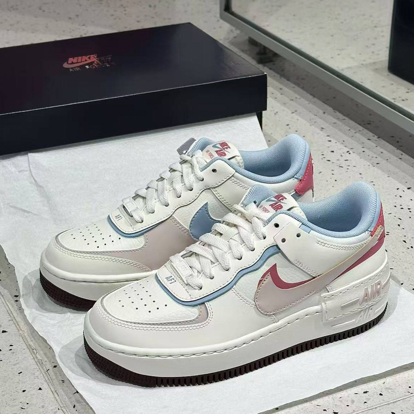 耐克女鞋AF1双钩情人节空军一号粉色运动板鞋休闲小白鞋IQ9803