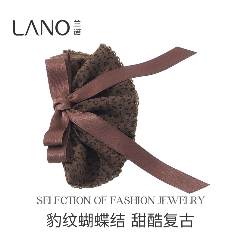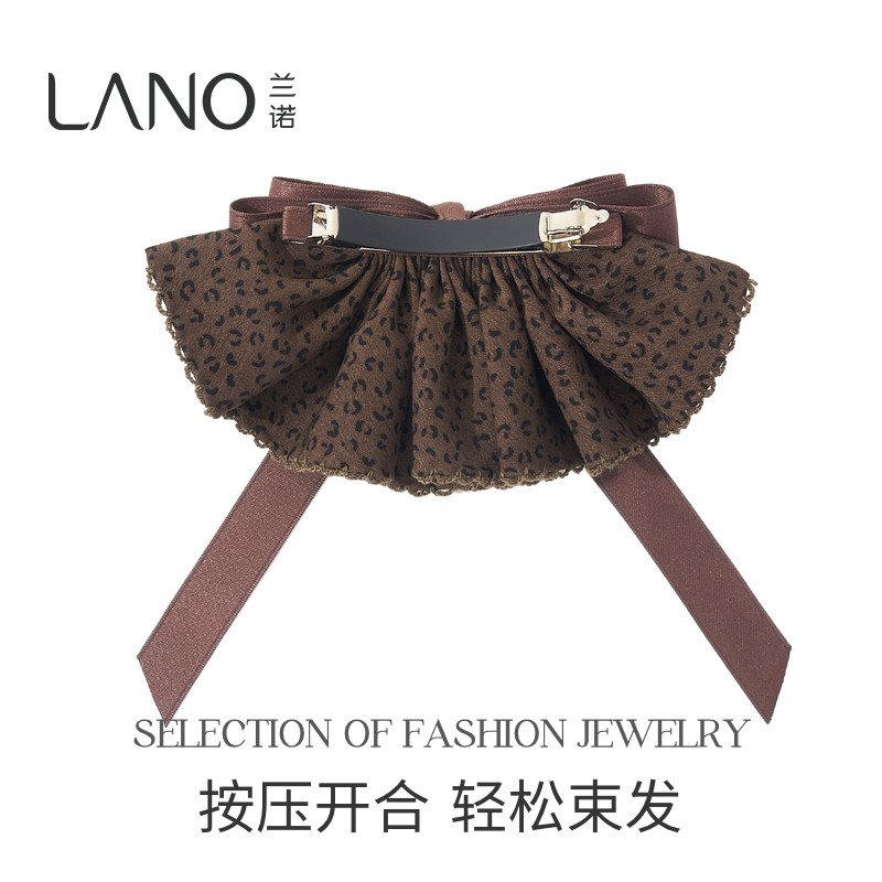 兰诺豹纹蝴蝶结发夹女款2025新款高端后脑勺半扎发一字夹成人夹子