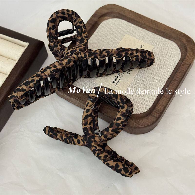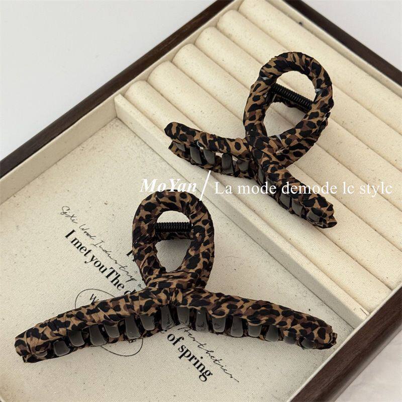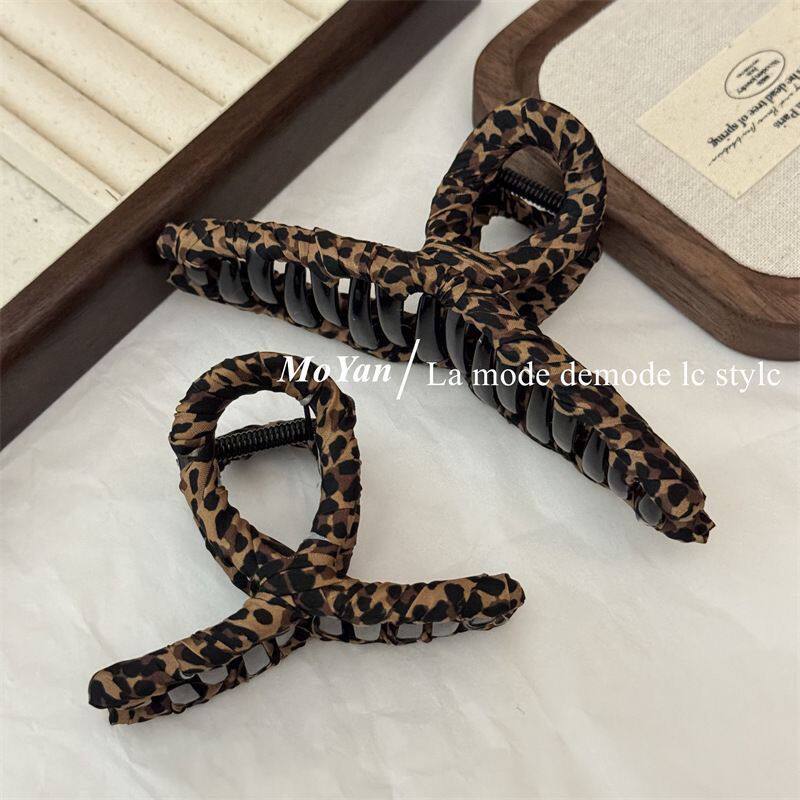 新款豹纹裹布抓夹气质时尚后脑勺鲨鱼夹复古发抓发卡短发长发卷发