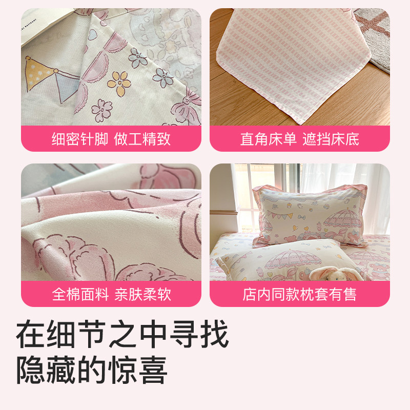 A类全棉双层纱床单单品学生宿舍纯棉被单纯色枕套三件套2025新款4