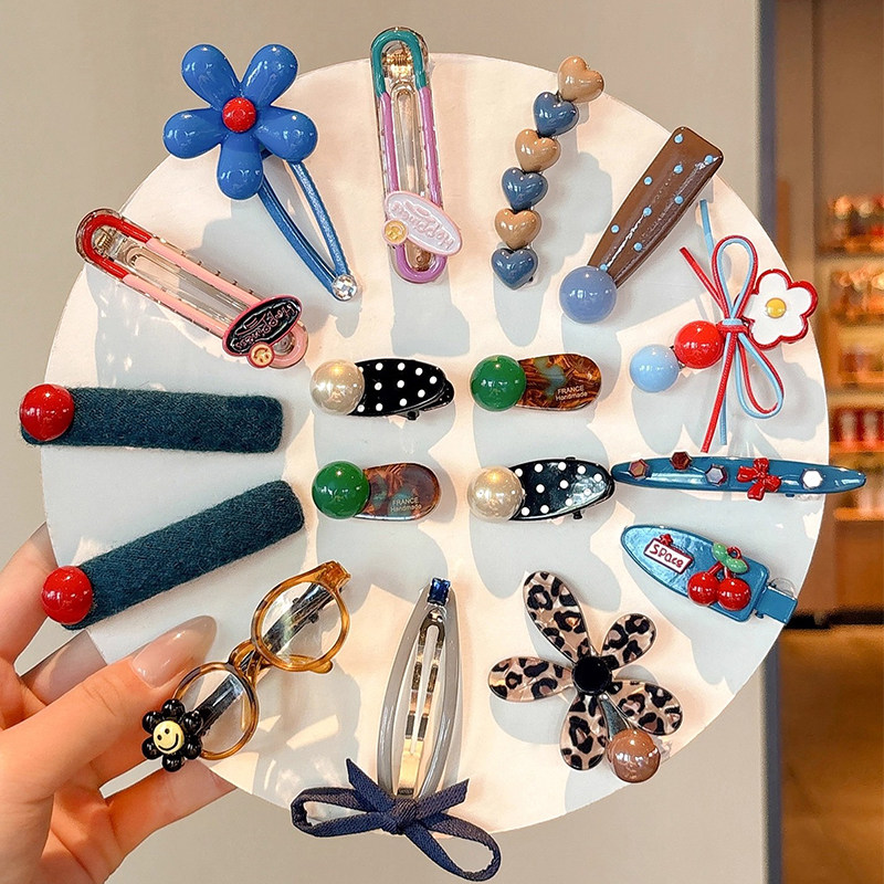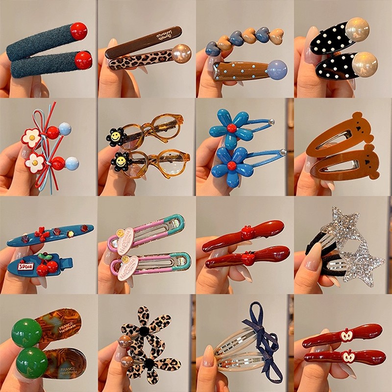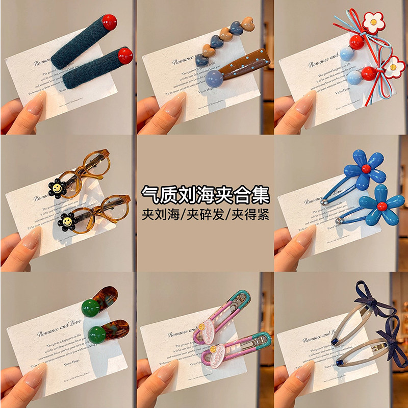 少女小金属刘海碎发一字鸭嘴造型侧边美妆发夹女发卡黑色夹子发饰