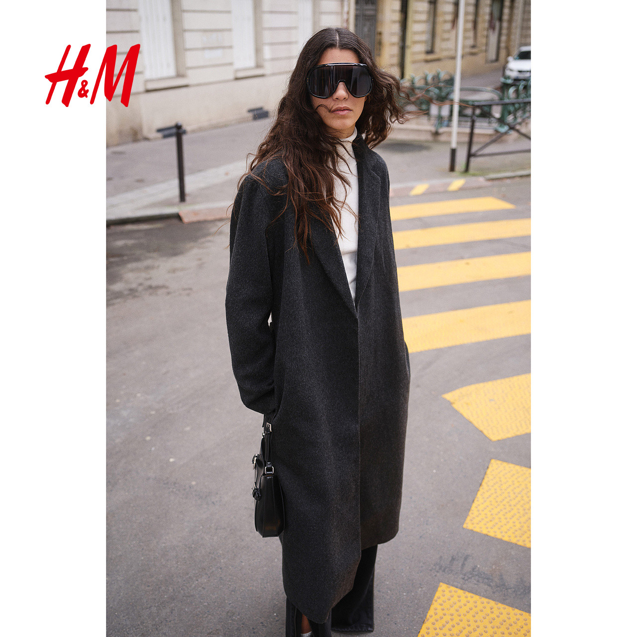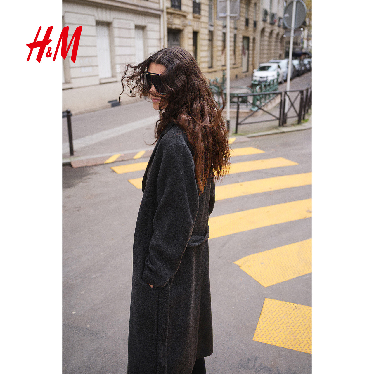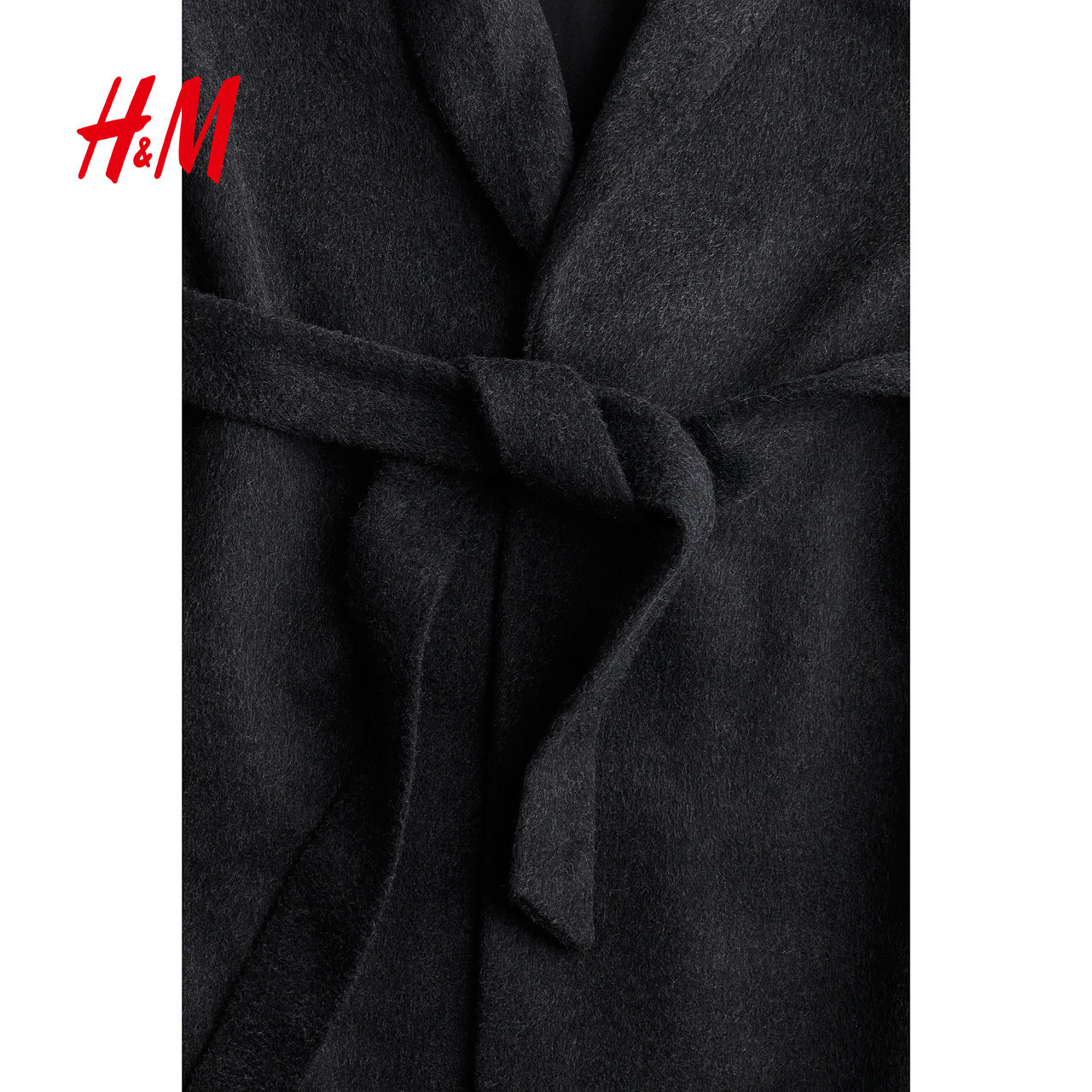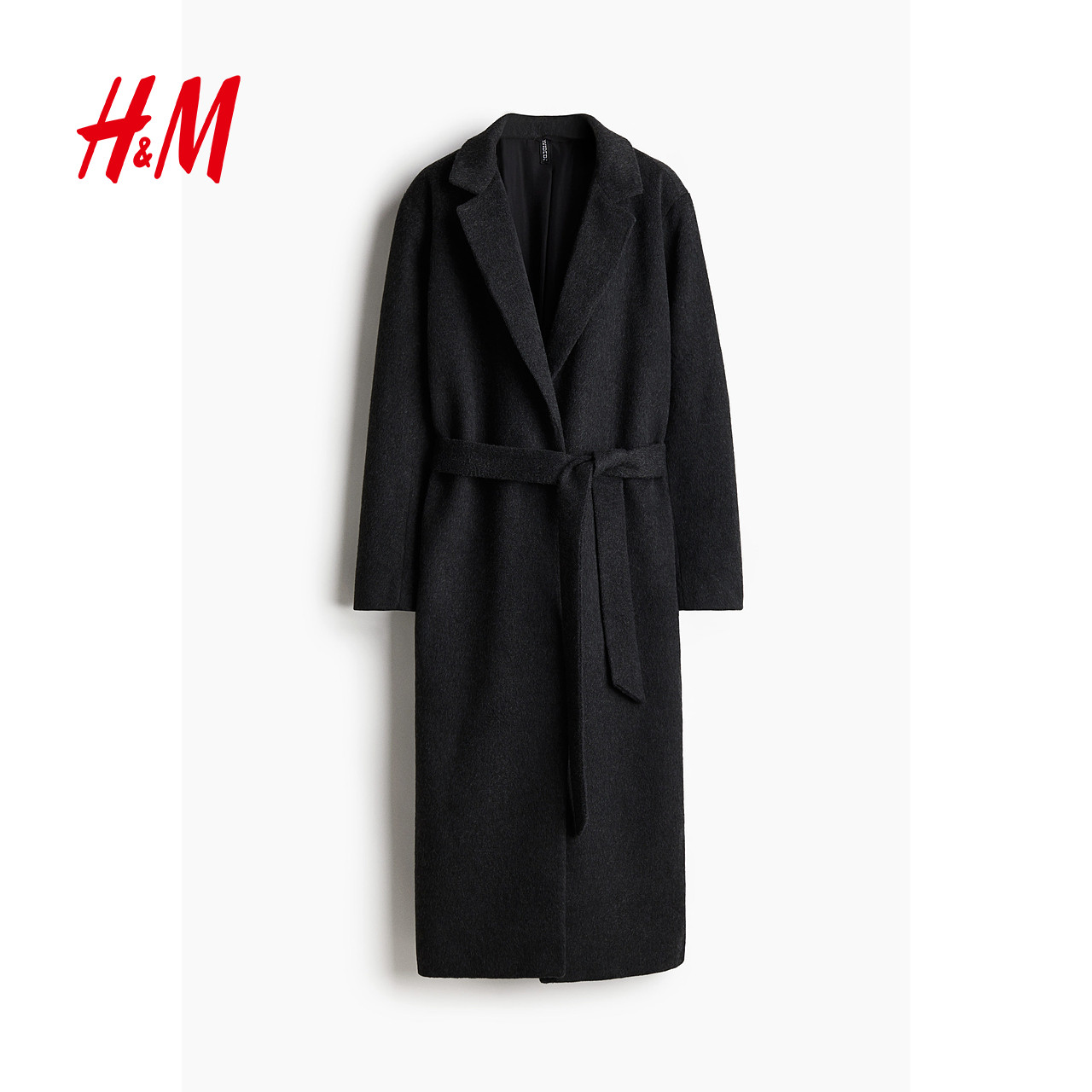 HM女装毛呢外套2025年冬季新款时尚腰部系带保暖大衣1228998