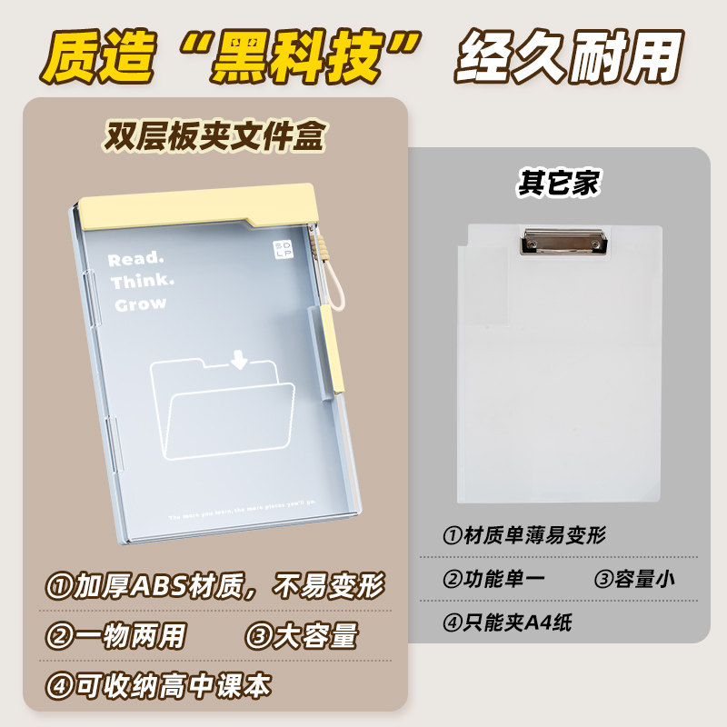 象限系列·双层文件夹写字垫板试卷夹收纳盒学生用夹板写字板A4资料夹办公用品整理夹大容量卷子收纳夹神器
