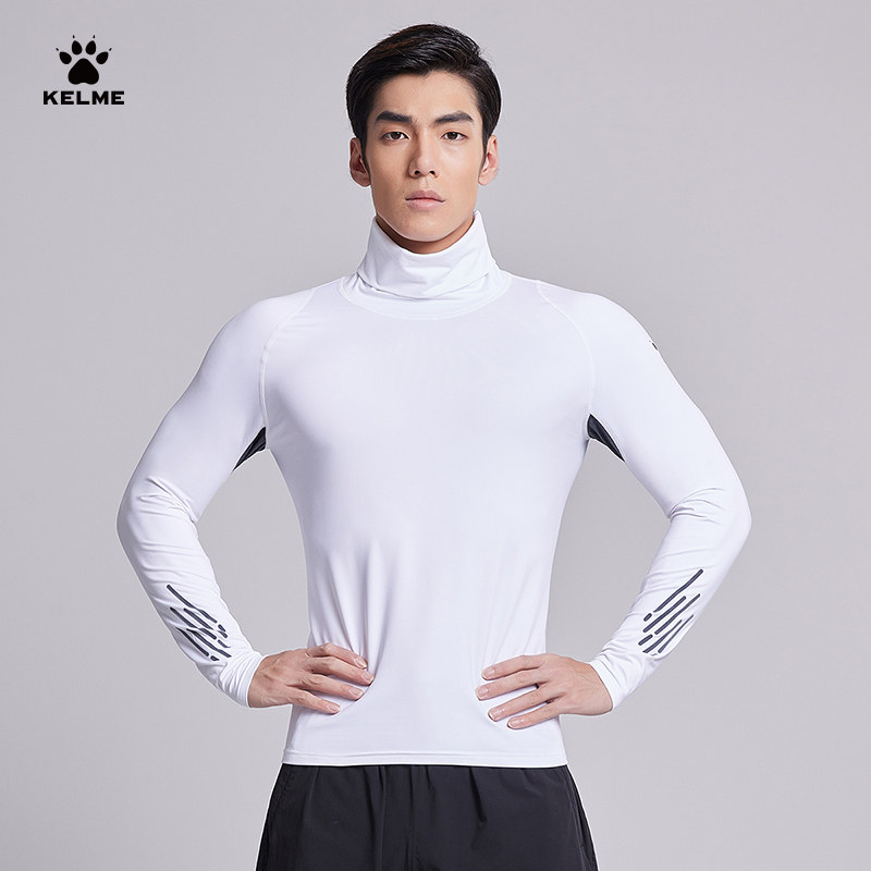 KELME卡尔美运动健身服加绒高领紧身衣足球训练跑步高弹打底T恤男