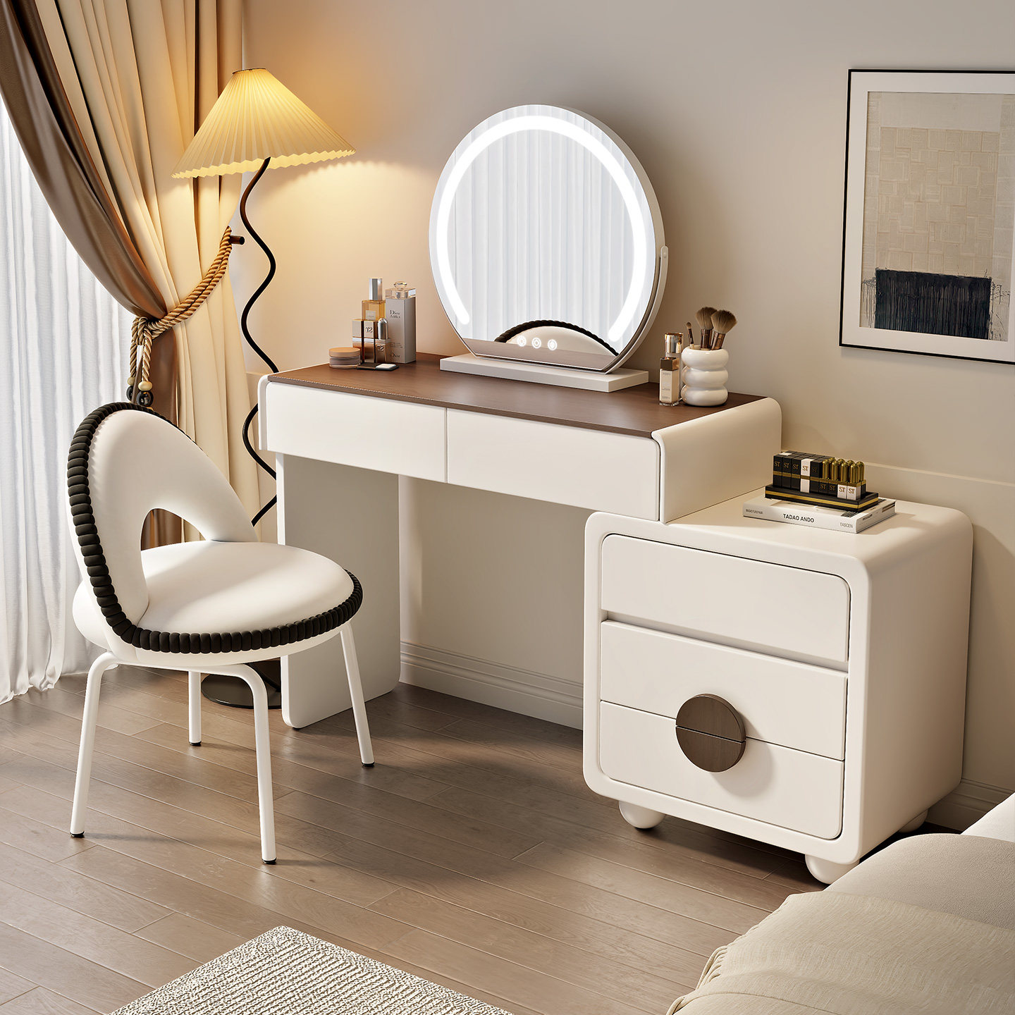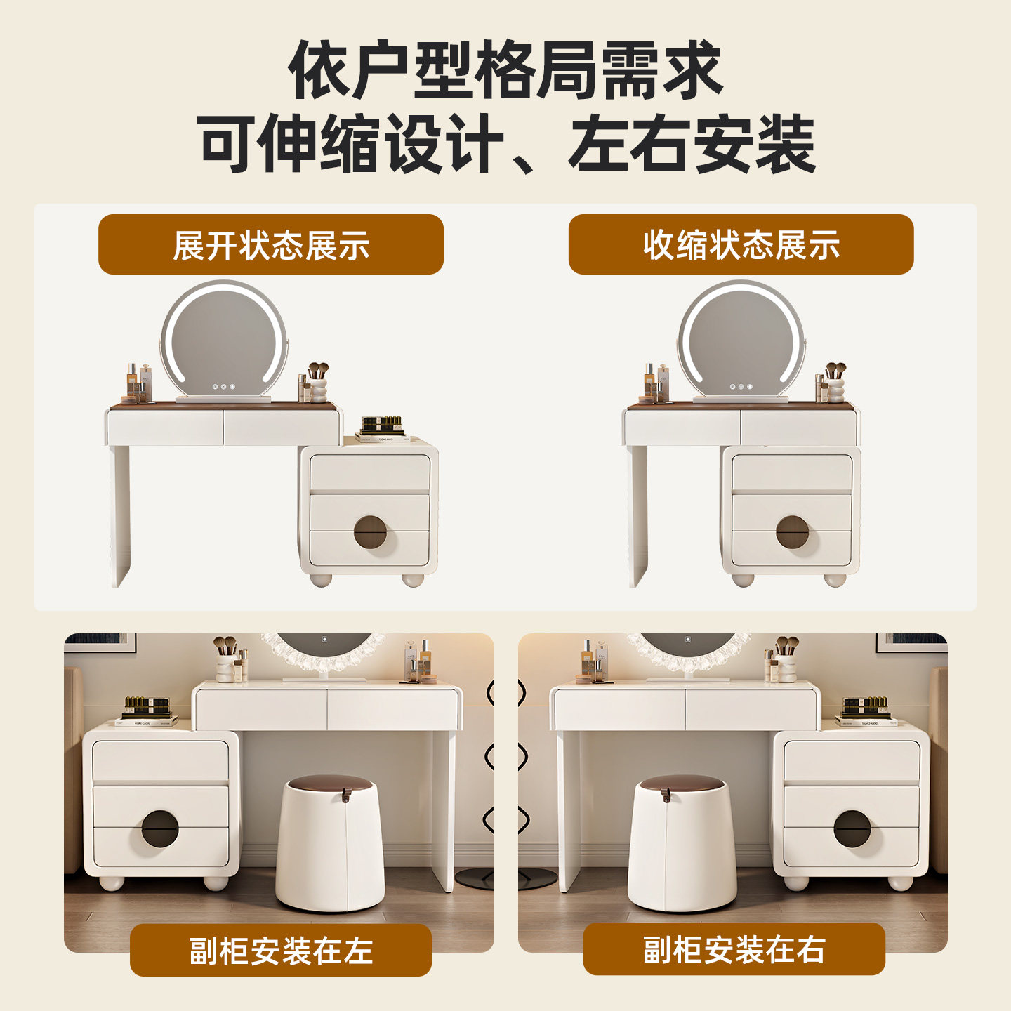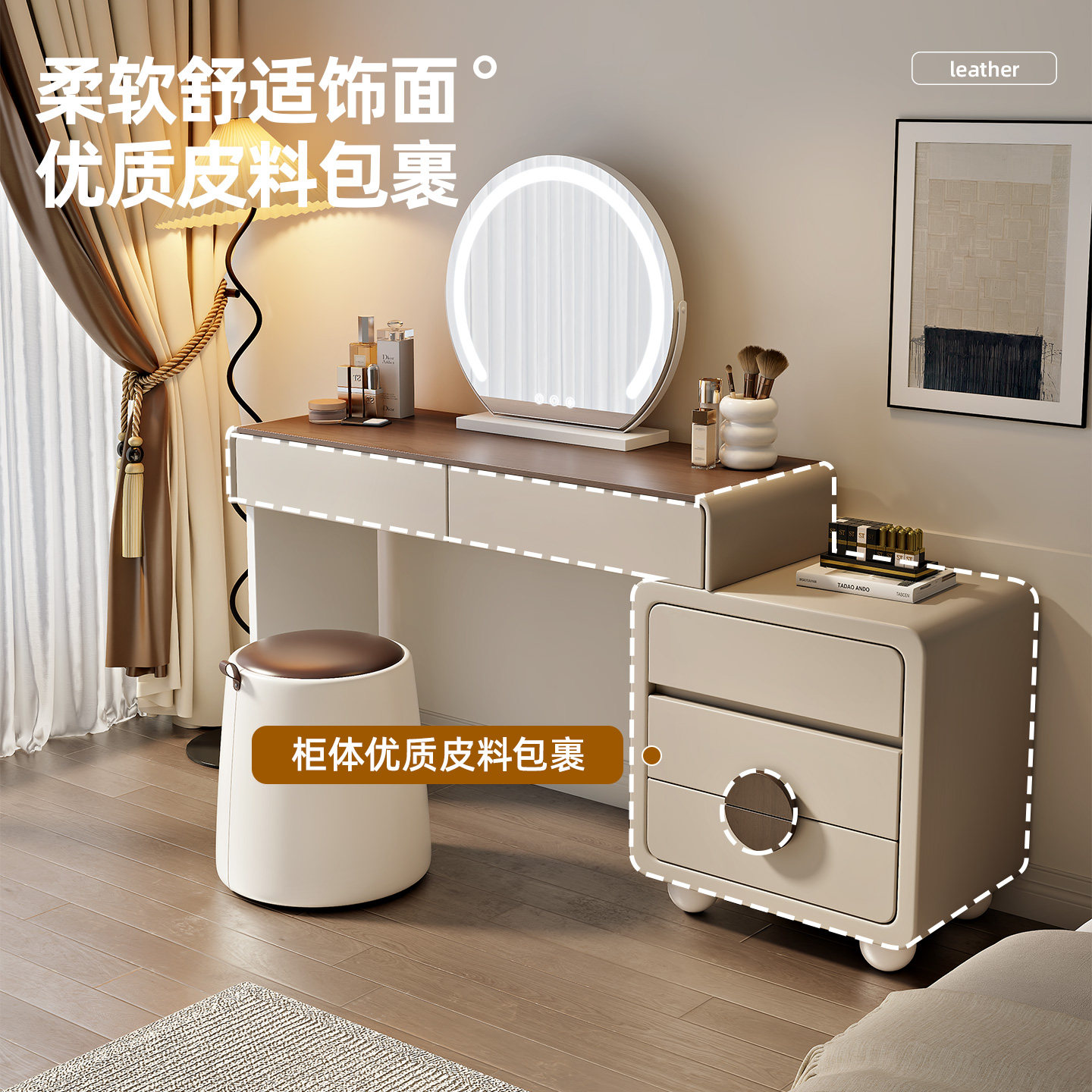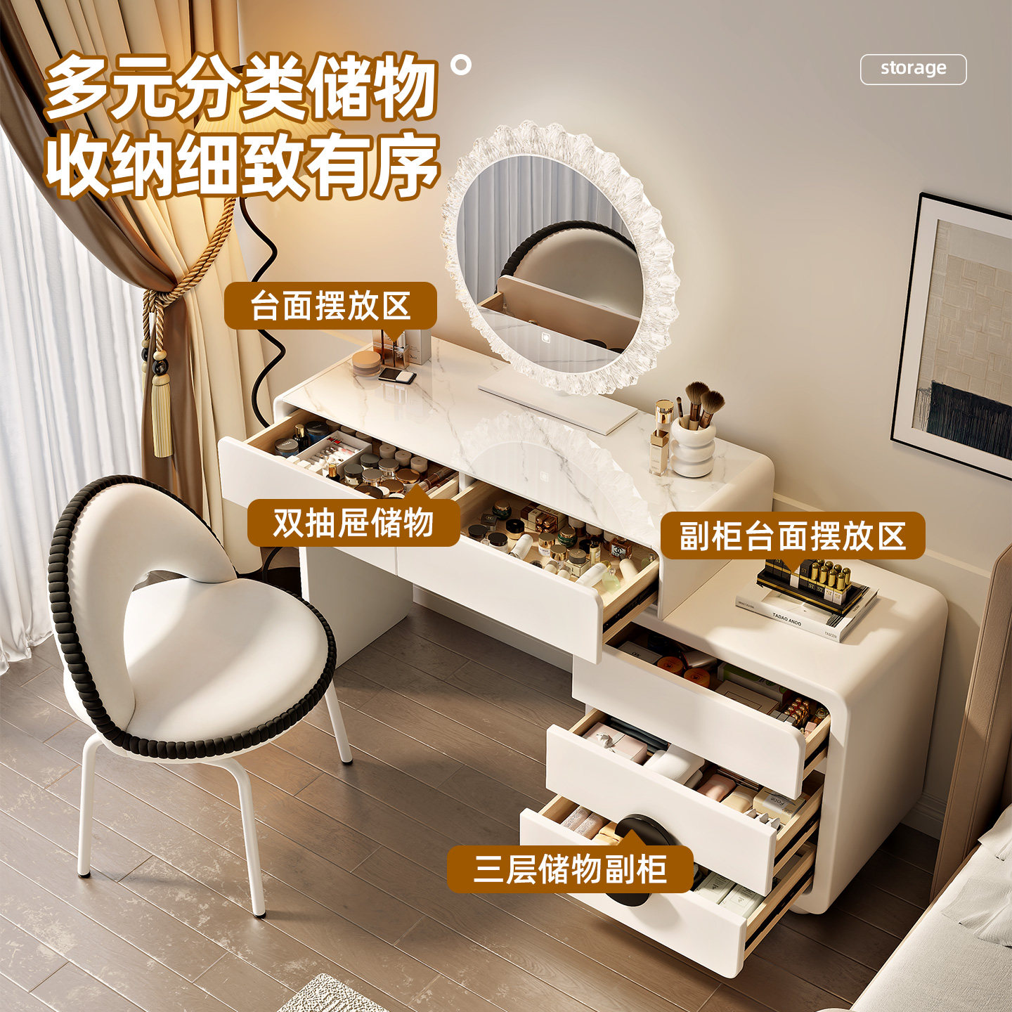 2025新款梳妆台卧室现代简约小户型化妆台斗柜一体实木床尾化妆桌