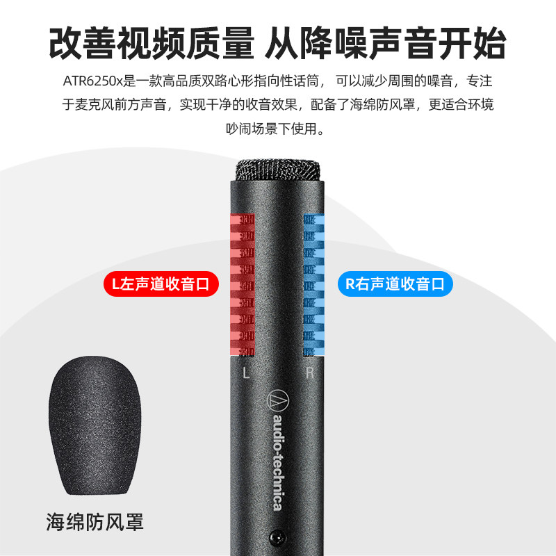 铁三角ATR6250x枪式指向性采访机顶式单反相机录音话筒外接麦克风