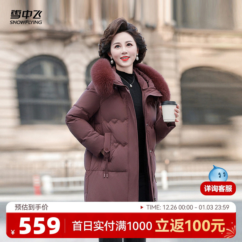 雪中飞2025冬新款女士妈妈短款羽绒服连帽狐狸毛领时尚保暖大码