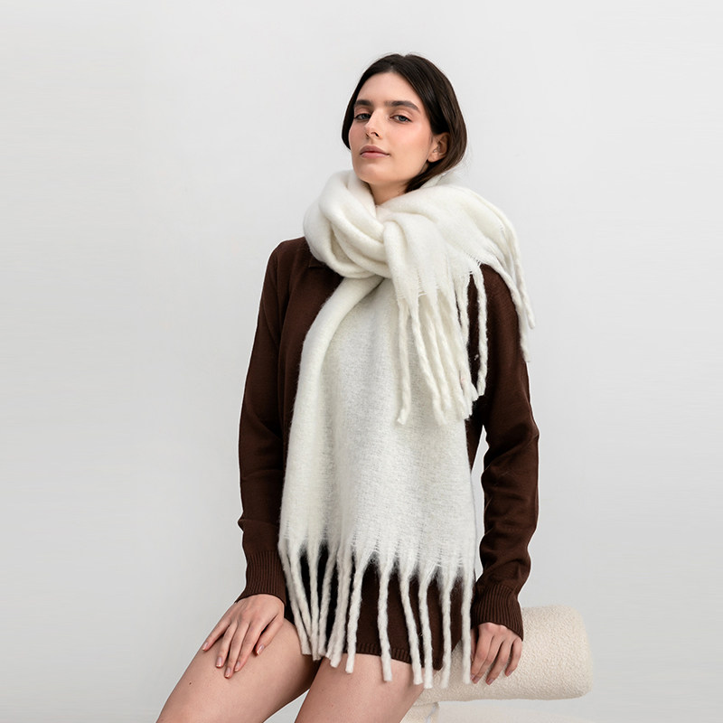 雪花双面针织围巾女秋冬季韩系氛围感加厚保暖高级感围脖复古披肩