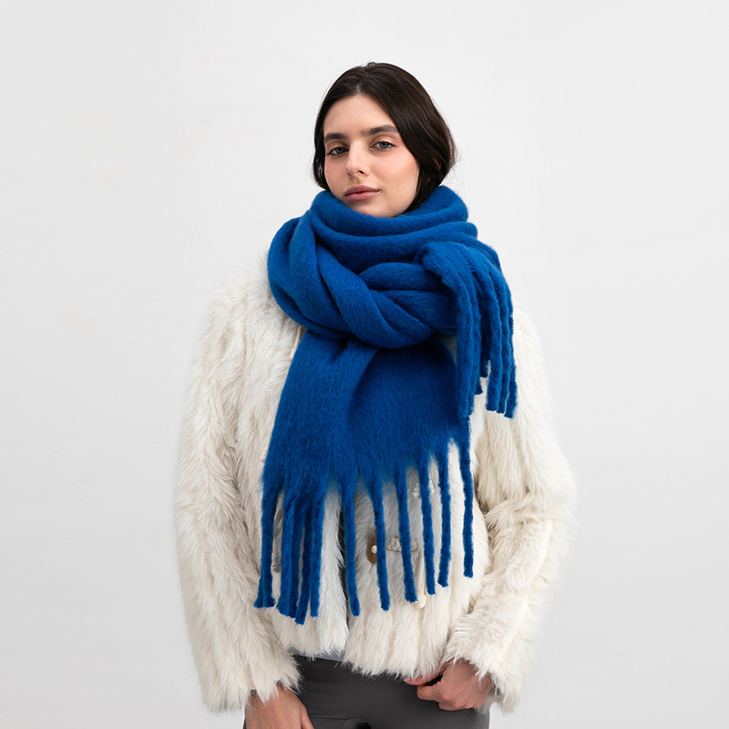 【王俊凯同款】骆驼围巾冬季女新年礼物保暖围脖男针织蓝色围巾