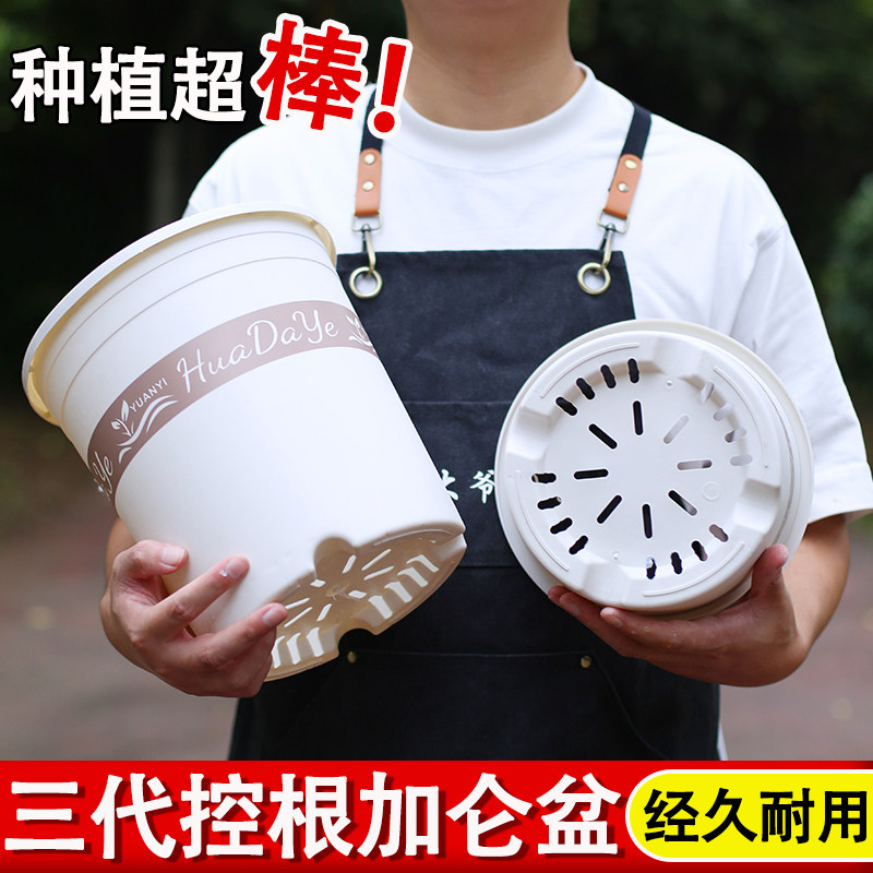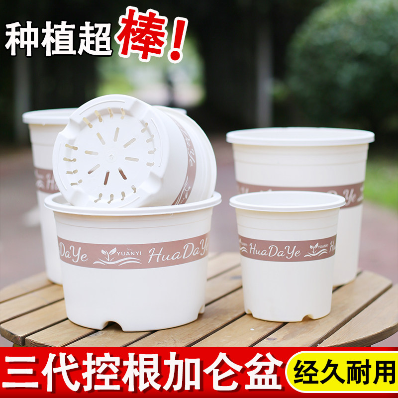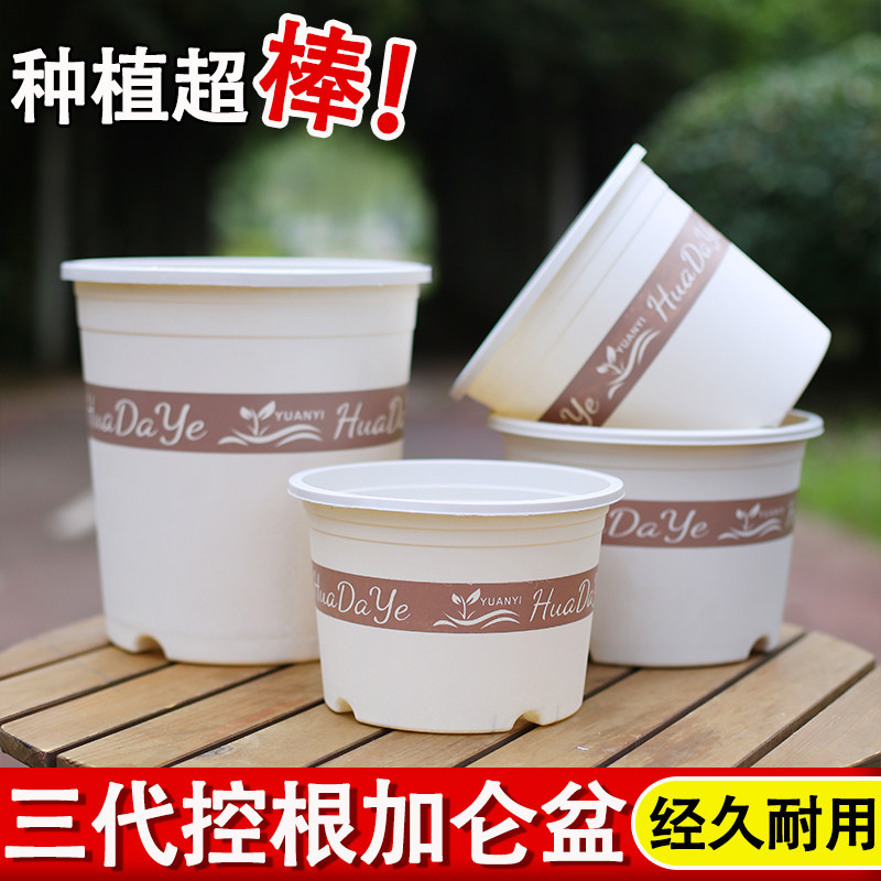 塑料圆形加厚多肉花卉绿植育苗盆阳台园艺用品三代白色加仑盆控根