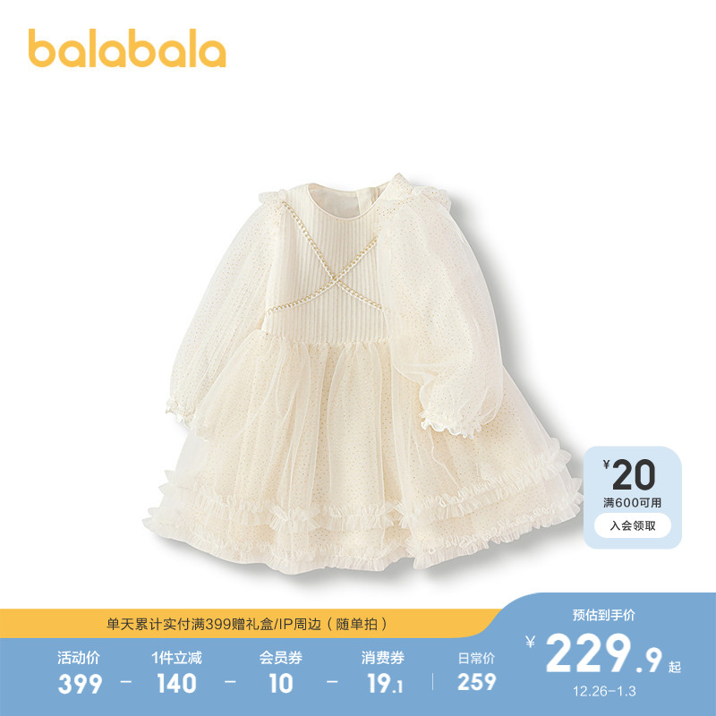 巴拉巴拉宝宝连衣裙蓬蓬网纱裙A字裙女童装2025秋季新款裙子儿童