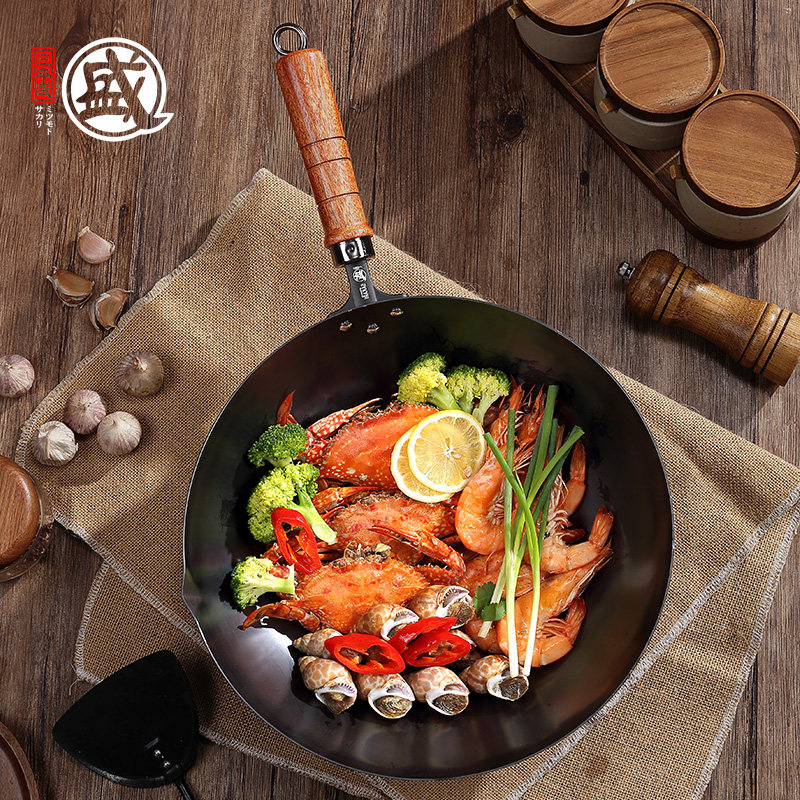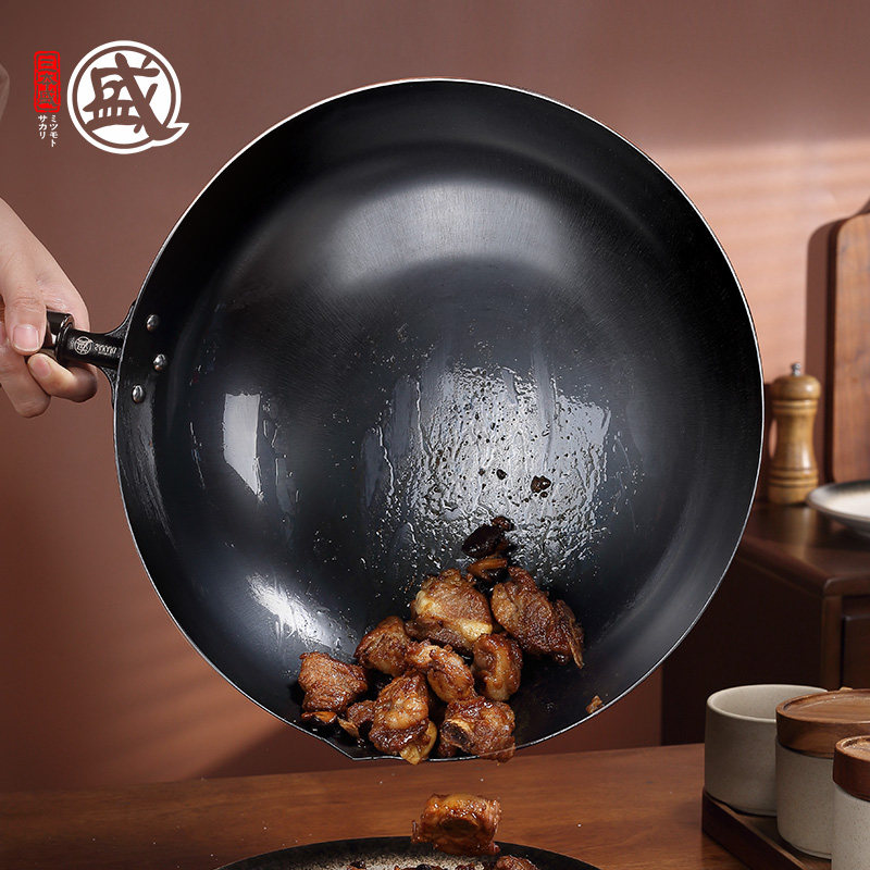 日本三本盛炒菜锅家用炒菜老式燃气灶小熟进口专用无涂层不粘铁锅