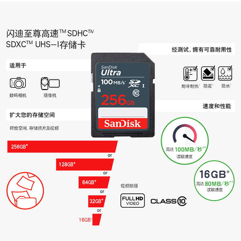 sandisk闪迪高速SD存储卡256g数码相机内存卡SD储存卡高清视频卡
