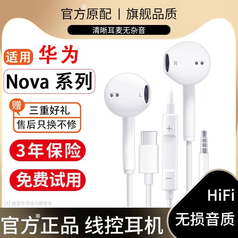 原装正品耳机有线适用华为Nova8/9/10/10se/Pro线控手机typec圆头