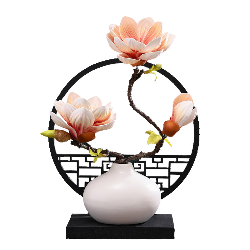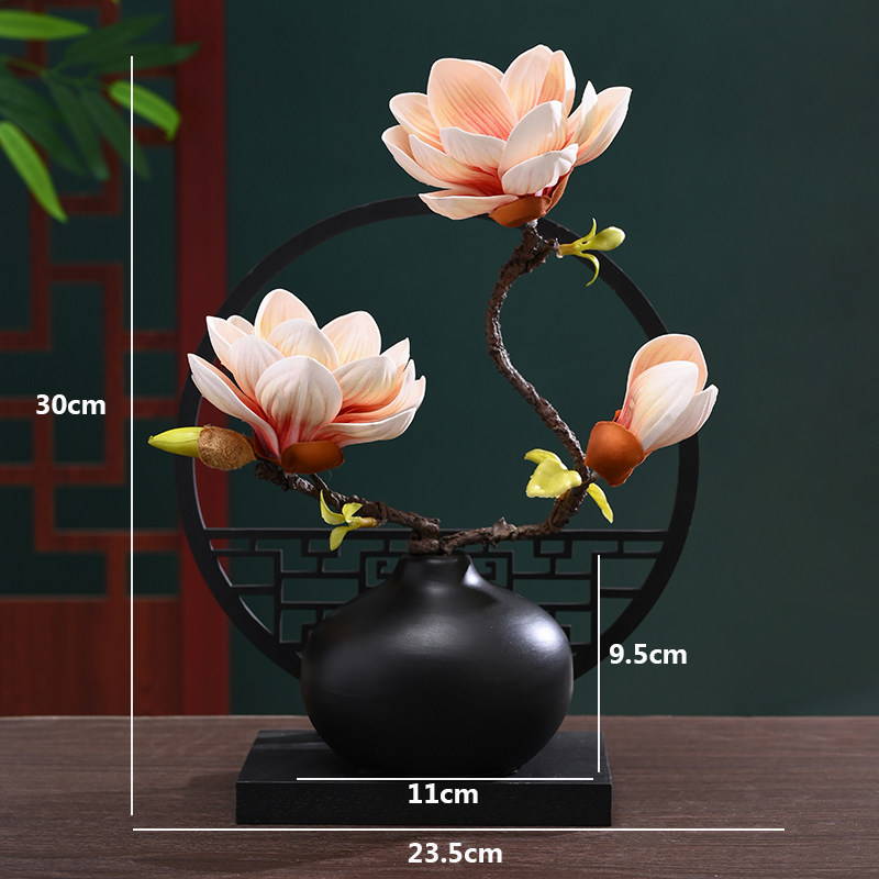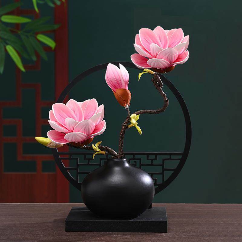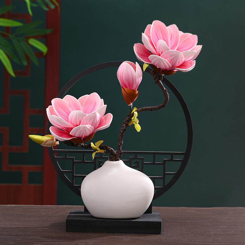 中式陶瓷仿真玉兰花假花花瓶插花客厅展柜电视柜装饰摆件套装摆放
