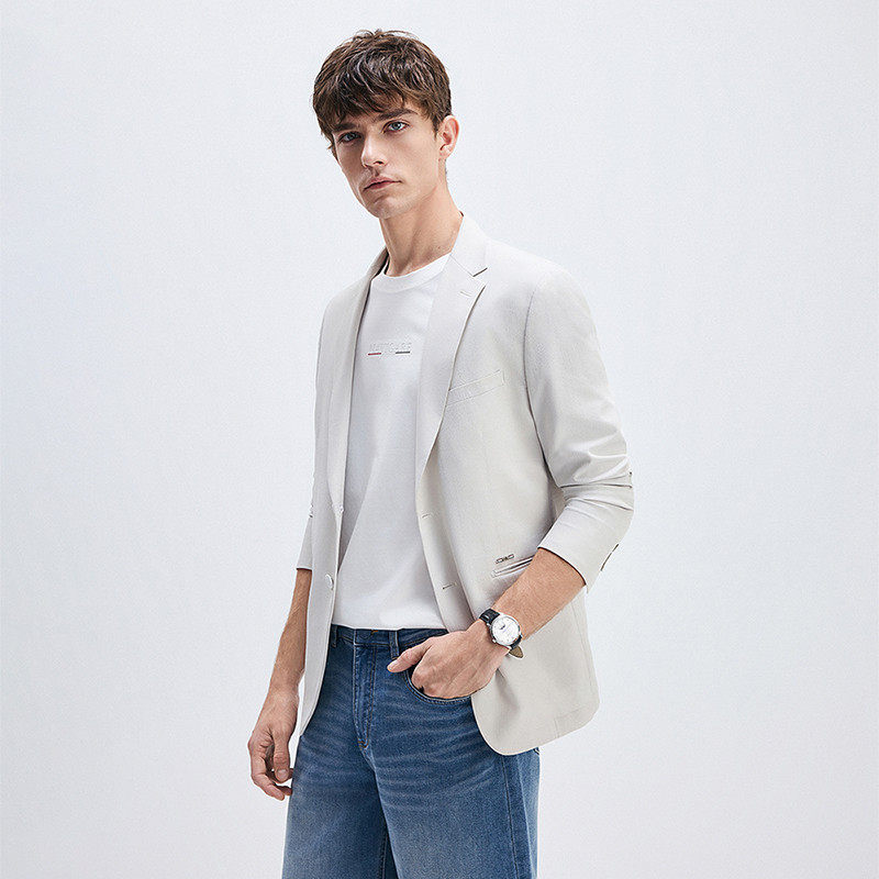 霞湖世家西服外套男春季新款UPF50+原纱防晒防水休闲便西268A
