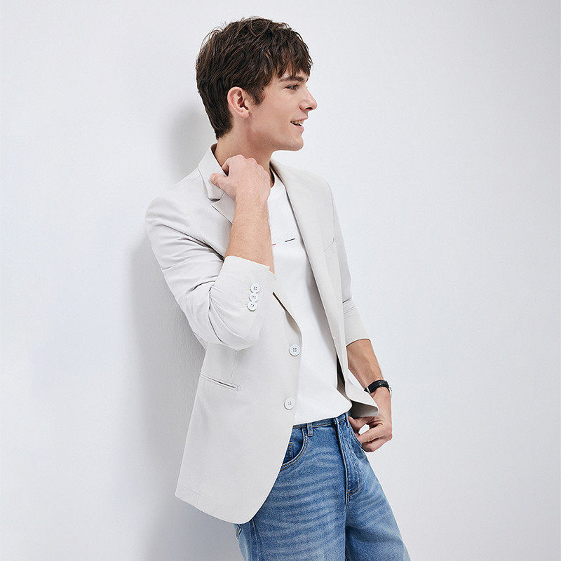 [莫代尔]Navigare意大利小帆船秋季白色西装男士休闲西服外套