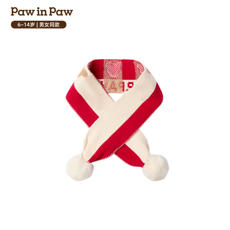 PawinPaw卡通小熊童装秋冬男女童撞色保暖围巾舒适