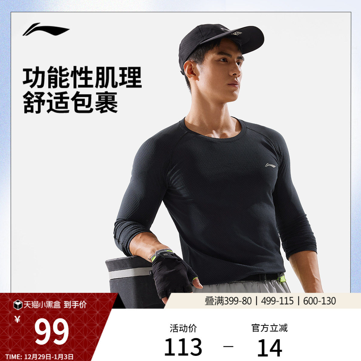 李宁健身衣男士健身系列长袖压缩衣保暖男装春季弹力针织运动服
