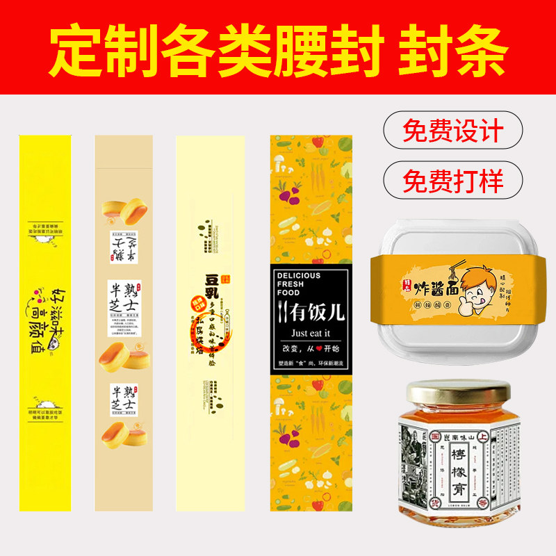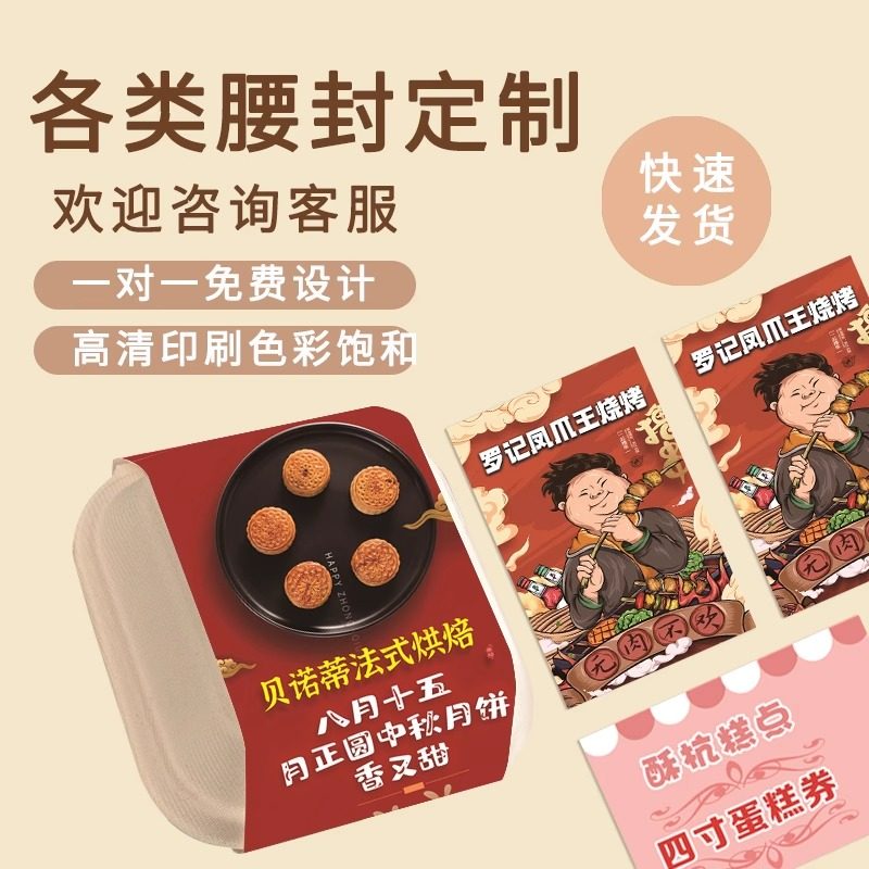 礼盒餐盒腰封定制外卖打包盒包装盒纸套烘焙水果捞封条不干胶印刷
