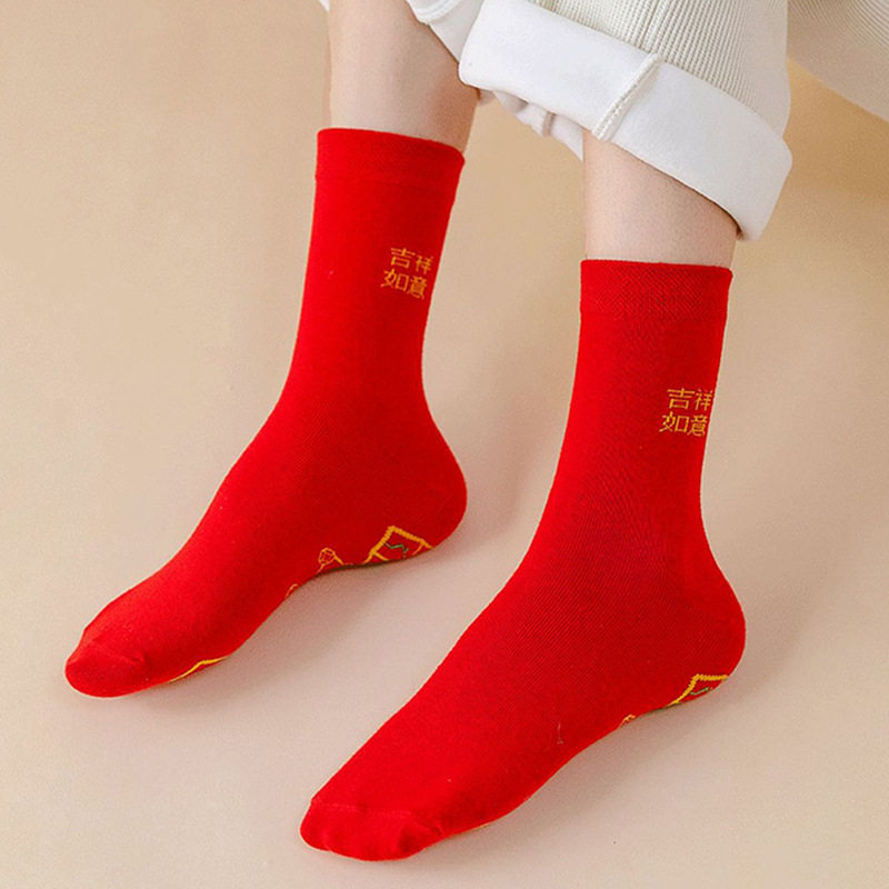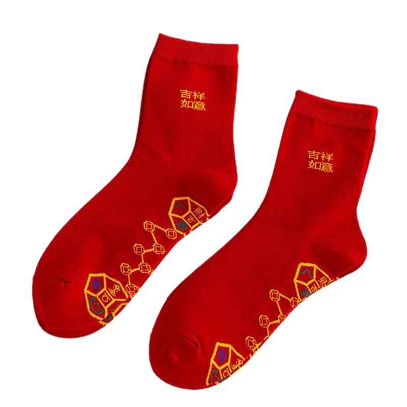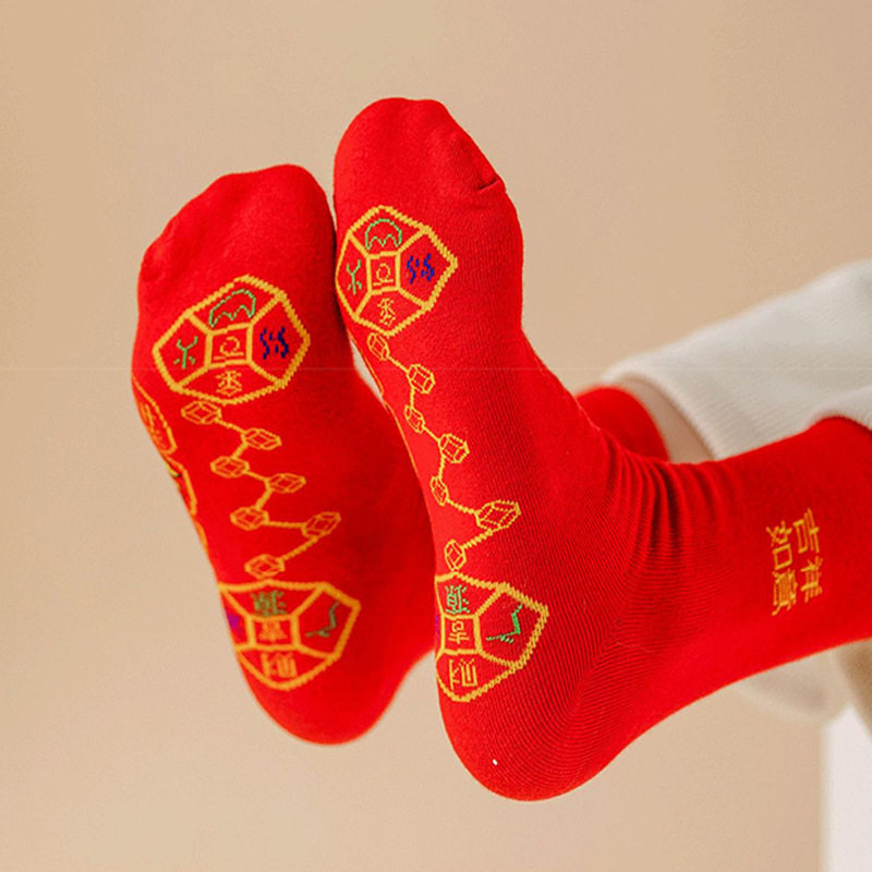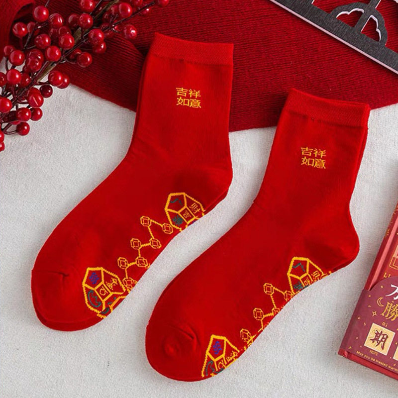 红袜子脚踏七星连珠袜袜袜蛇年红色旺运袜本命年结婚袜子中筒新年