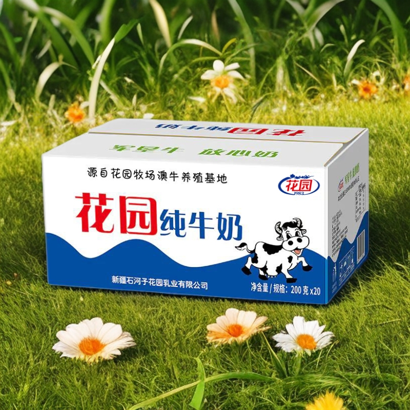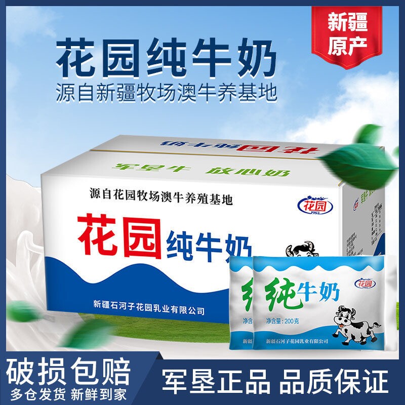 新疆花园纯牛奶200g*20袋整箱新日期牛乳脂蛋浓钙学生儿童早餐奶