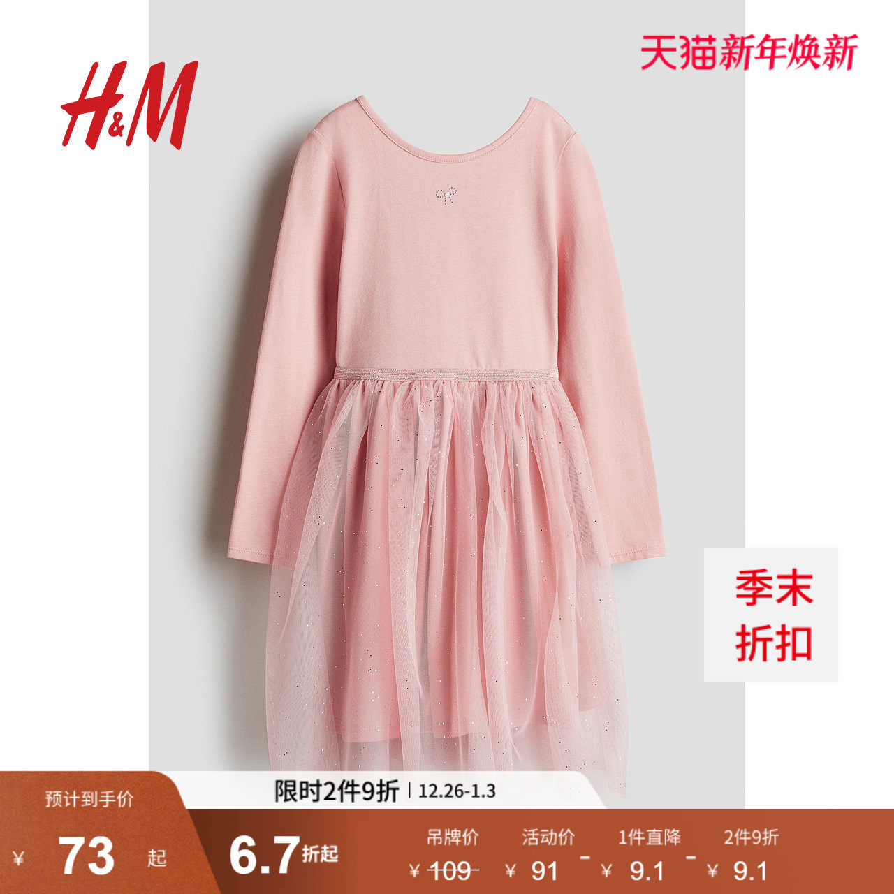 HM童装儿童女童连衣裙冬季节宽松薄纱裙摆公主裙1246266