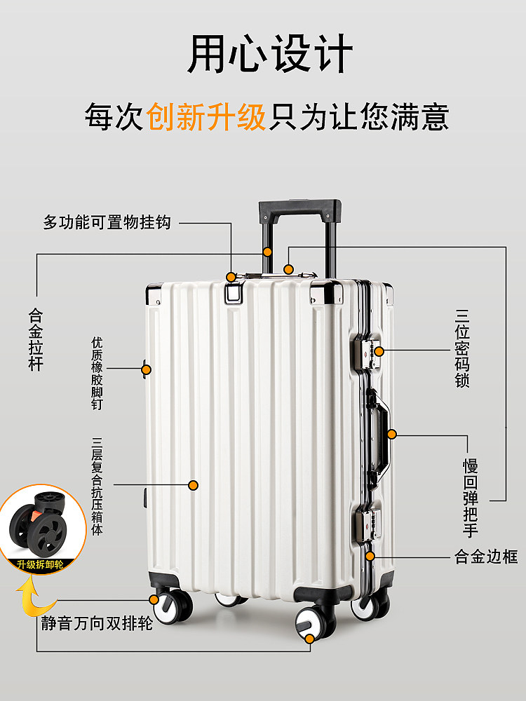 旅行箱行李箱铝框20拉杆箱万向轮24女男学生26登机密码皮箱子28寸