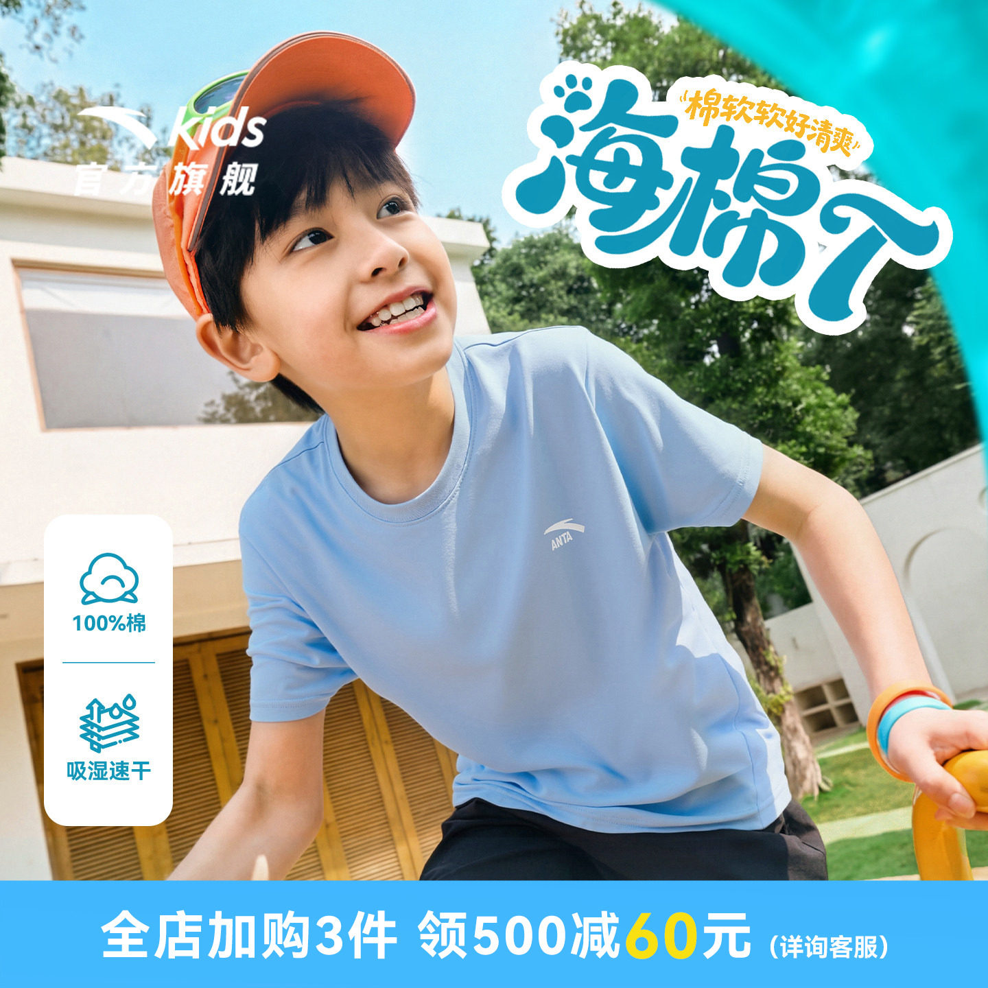海绵T-安踏儿童男女童白色短袖衫2026年夏季新款纯棉速干短袖T恤