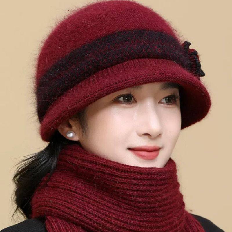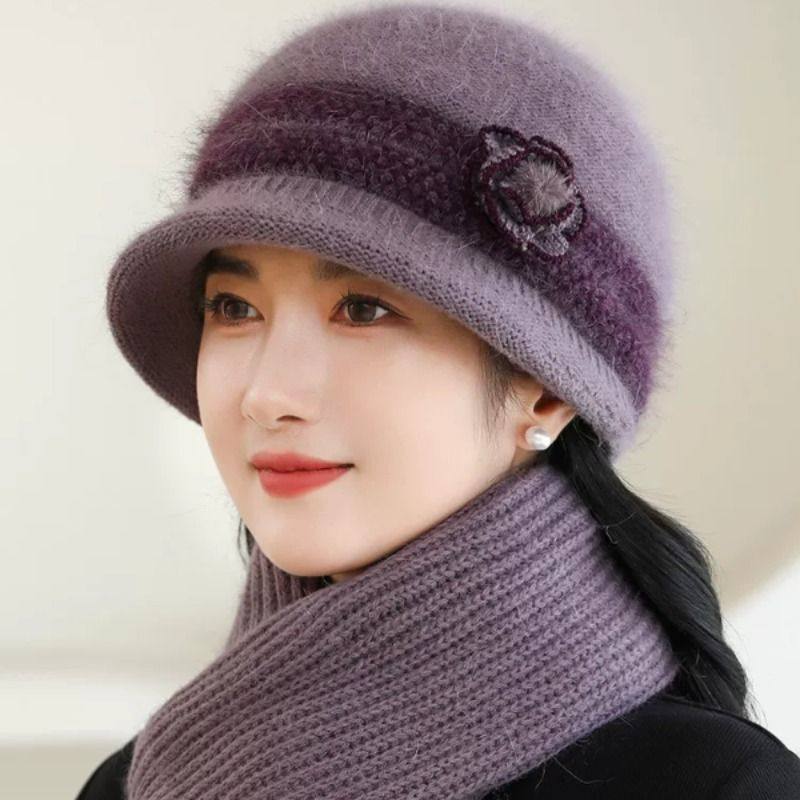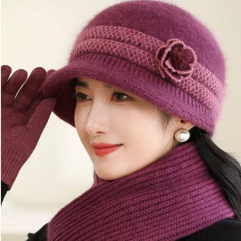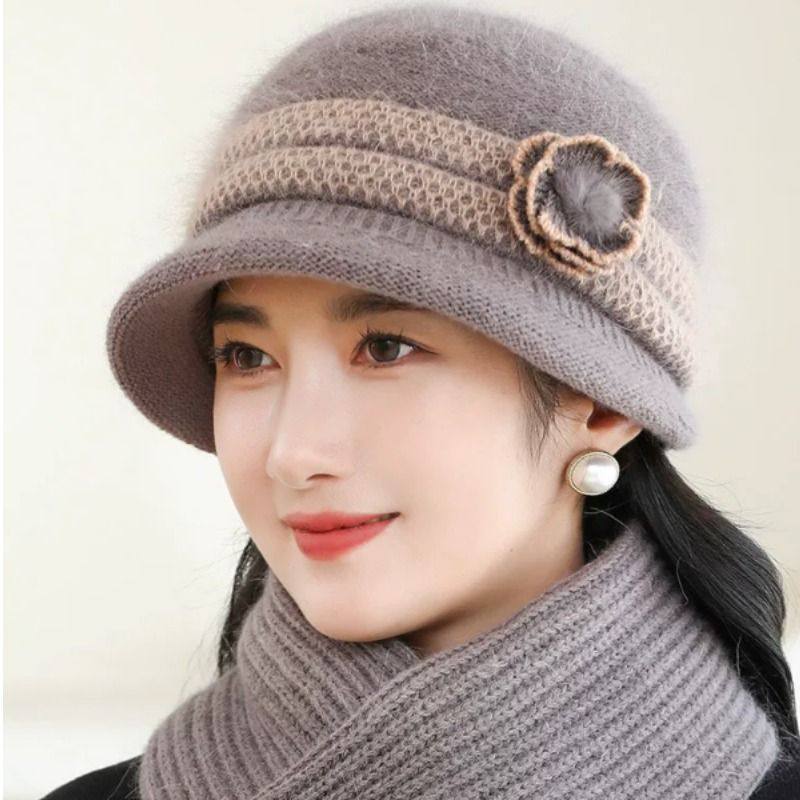 女士帽子冬天妈妈奶奶加绒保暖优雅毛线帽中老年人防寒棉帽老太太