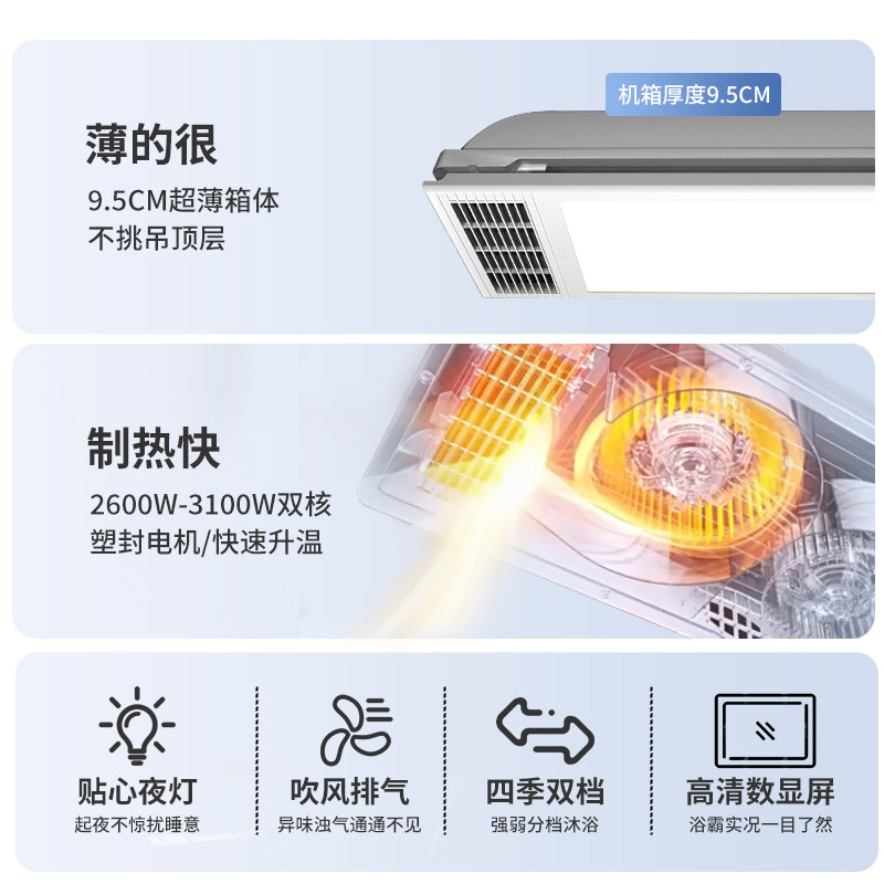 长城照明风暖浴霸灯卫生间集成吊顶排气扇一体浴霸暖风浴室大功率