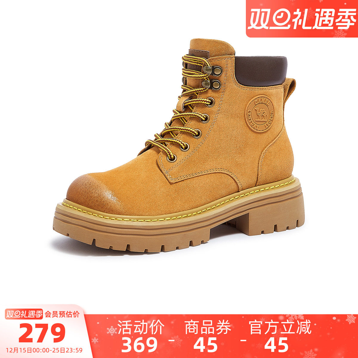 骆驼女鞋2025秋季新款马丁靴女厚底工装靴子户外耐磨踢不烂大黄靴