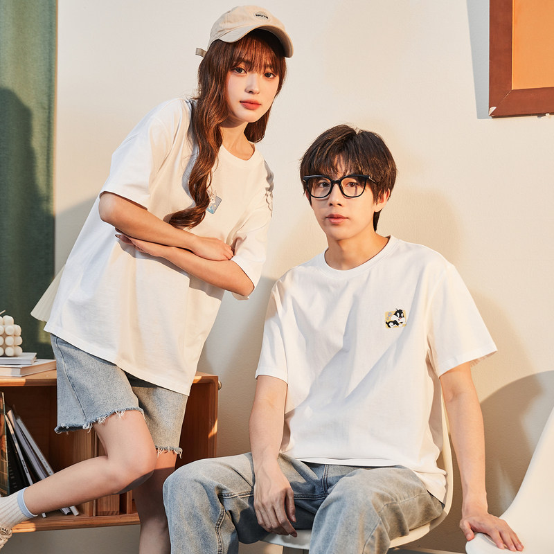 小尼力bf美式重磅纯棉短袖t恤男女基础款纯色oversize打底白色TEE