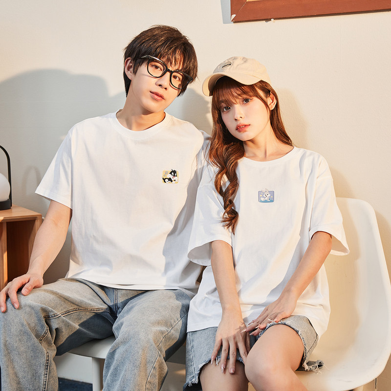 嘻哈纯棉纯色情侣短袖打底衫T恤白色男女体恤纯黑半袖衣服上衣服