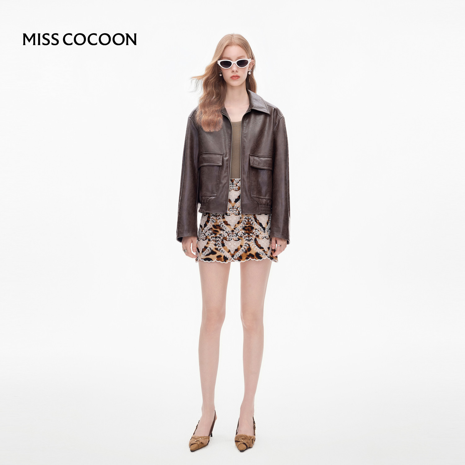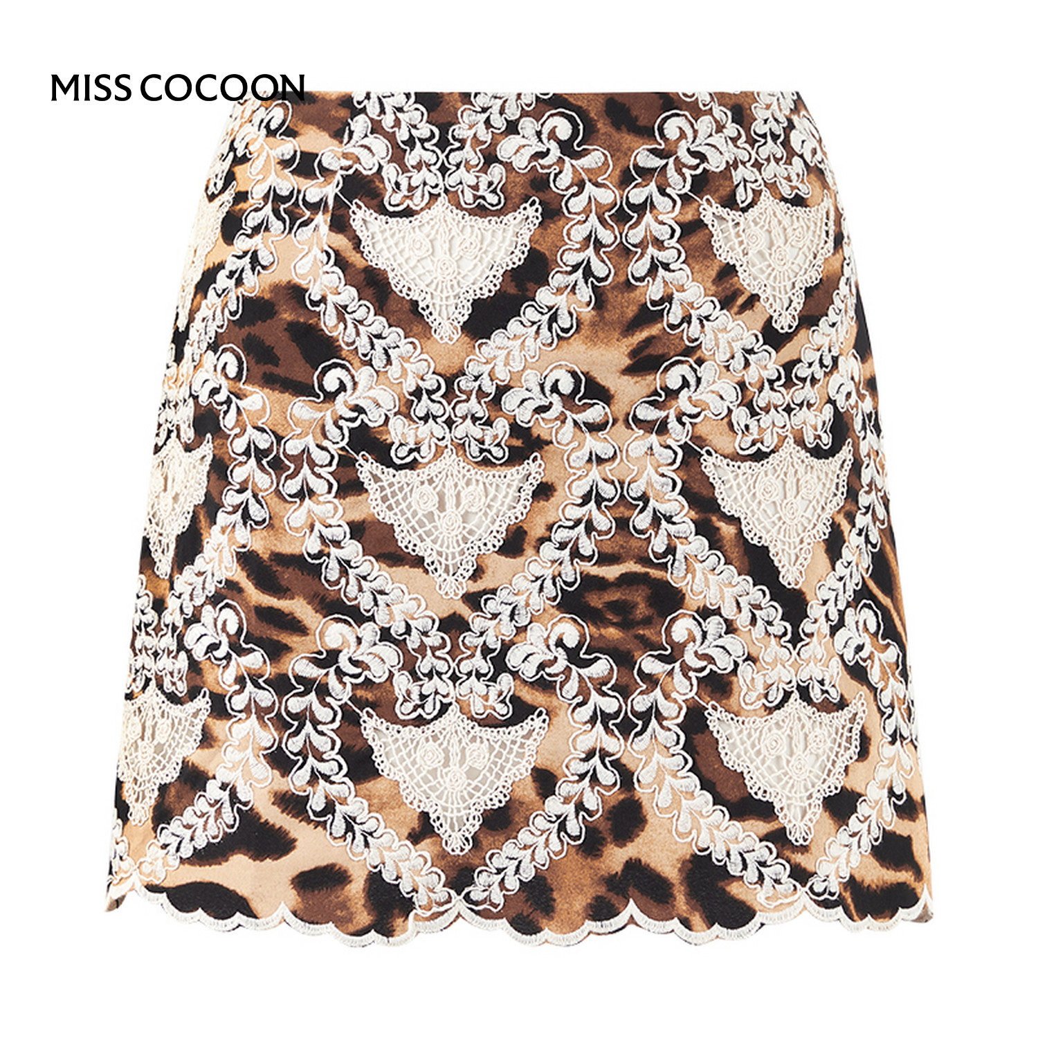 MISSCOCOON可可尼豹纹咖色短裙半裙女2025秋季新款复古气质包臀裙