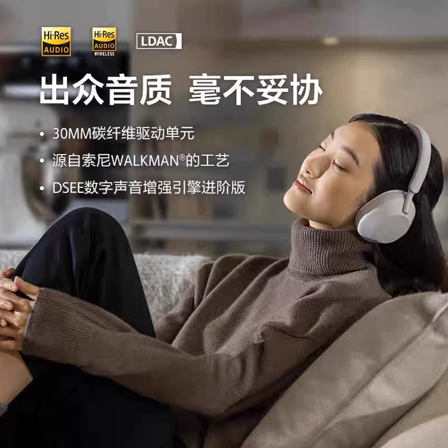 Sony/索尼 WH-1000XM5 高解析度头戴式无线降噪蓝牙耳机xm5