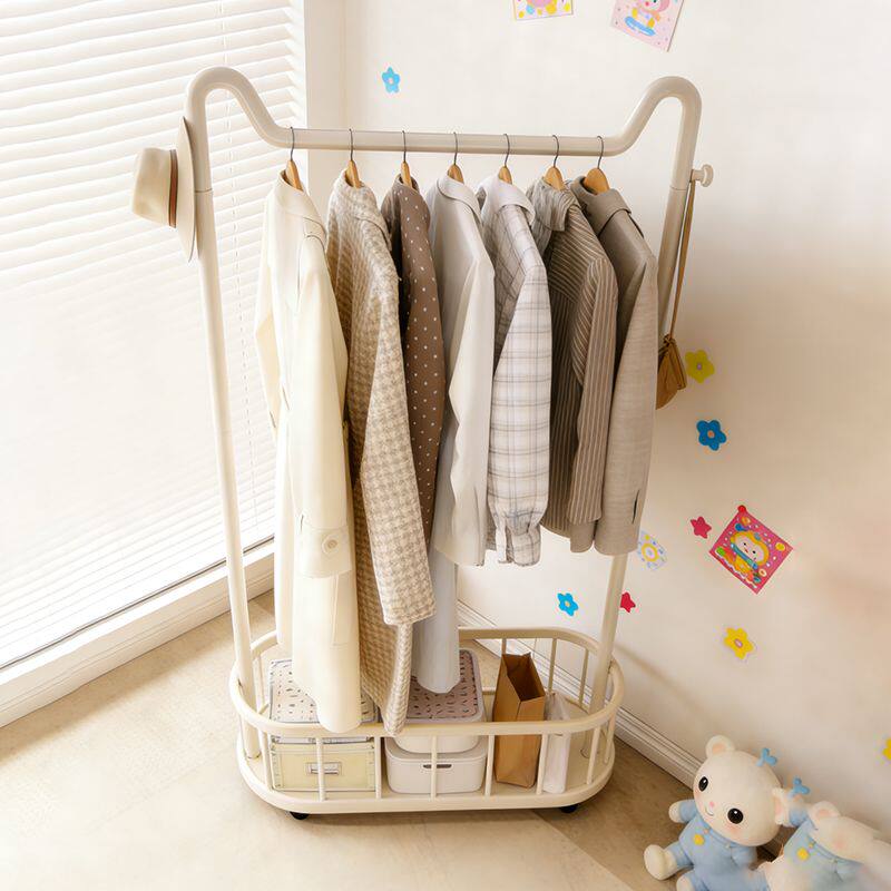 奶油风落地卧室挂衣架网红可移动带轮家用简易衣架阳台晾衣帽架子