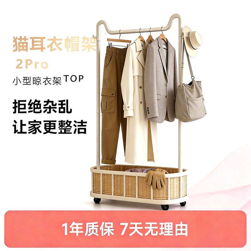猫耳 开放式衣帽架钢制立柱竖管移动带储物小户型落地立式晾衣架