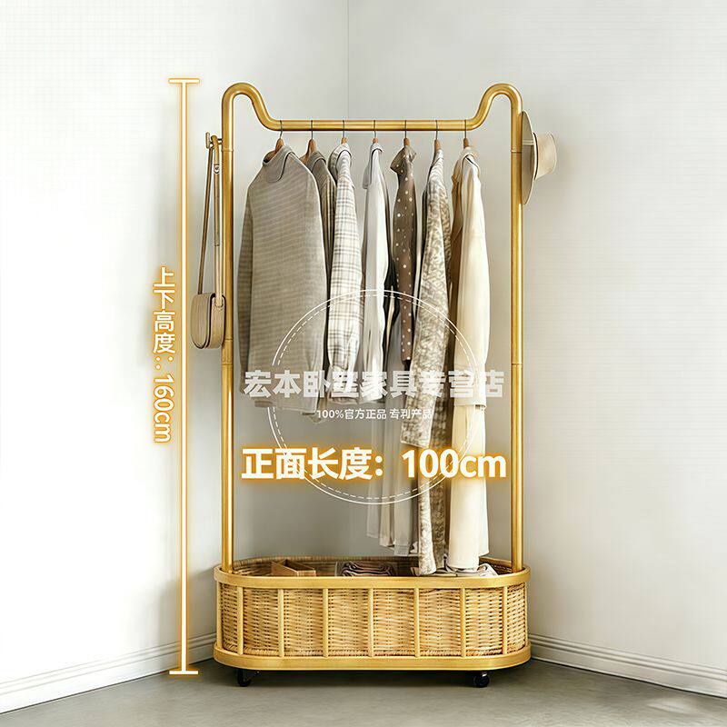 奶油风卧室落地衣架脏衣篓挂衣架家用铁艺衣服架客厅可移动衣帽架