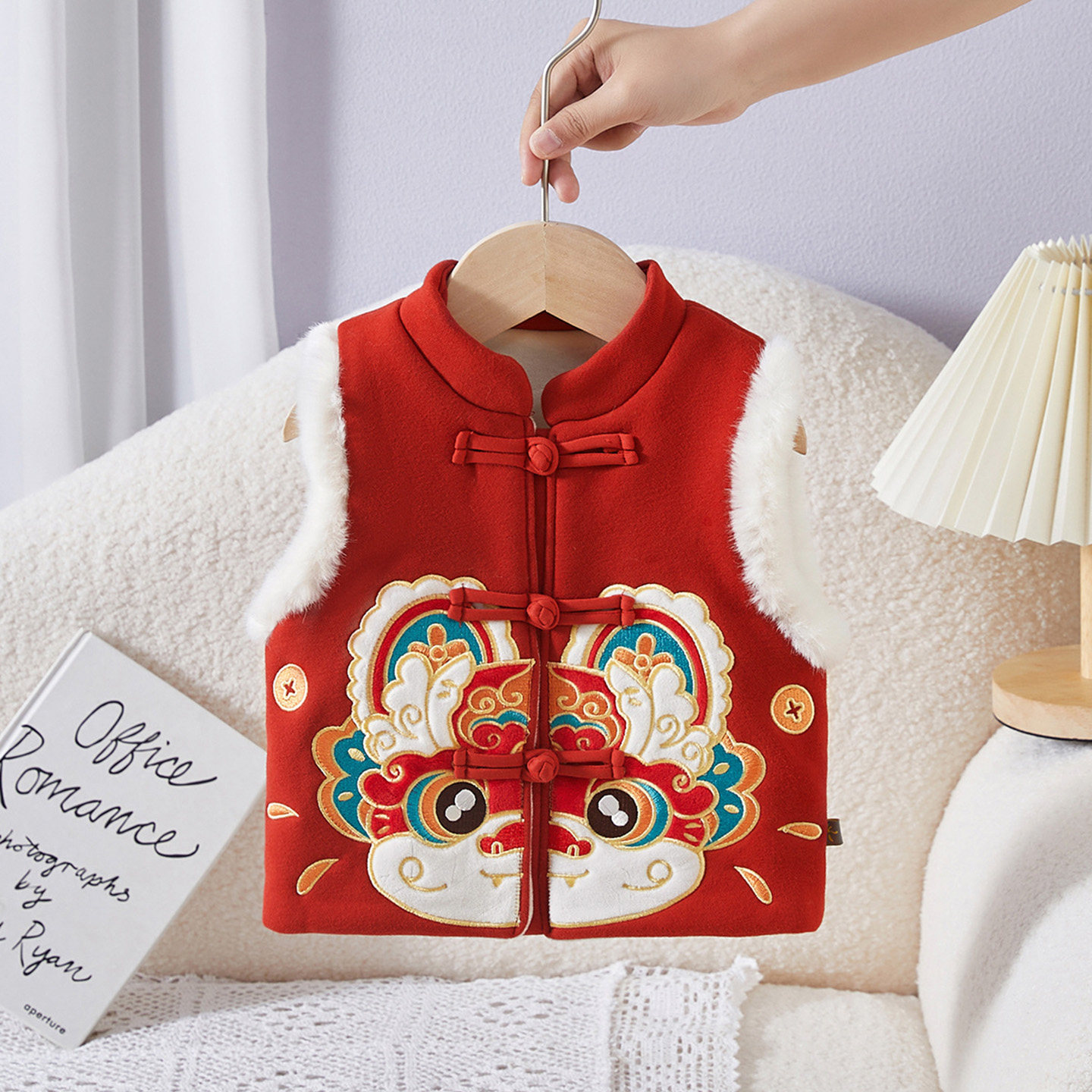 儿童马甲冬季加绒宝宝背心中国风舞狮男女童马甲儿童冬季过年服装