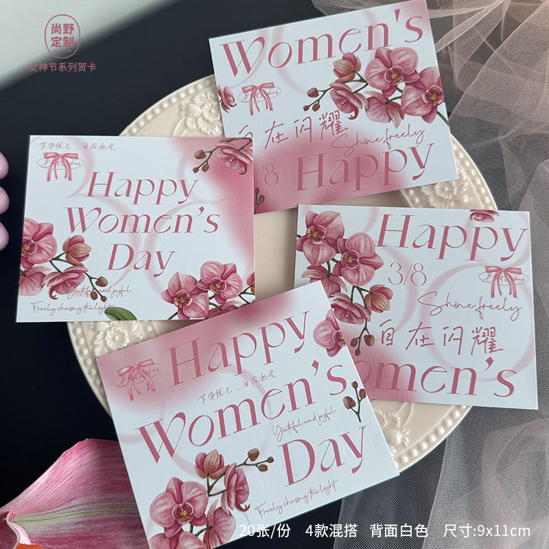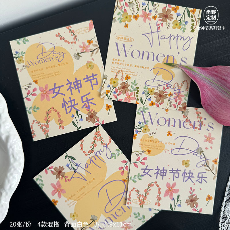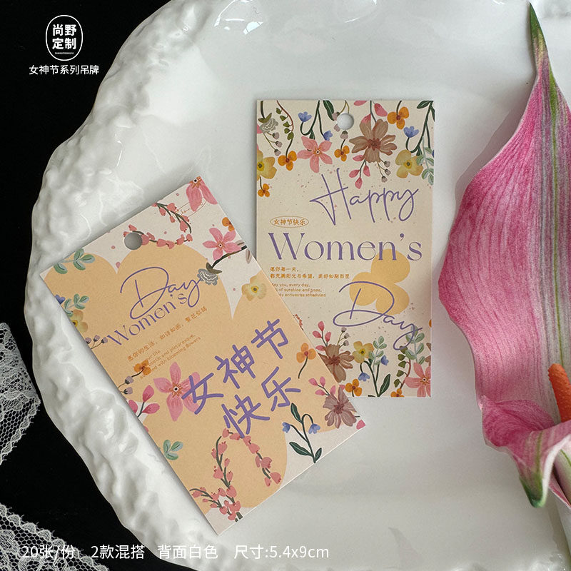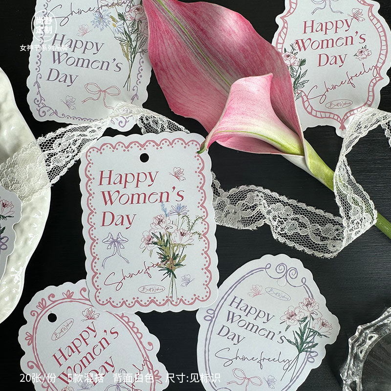 三八女神节贺卡38妇女节卡片法式小清新鲜花伴手礼送老师员工吊牌