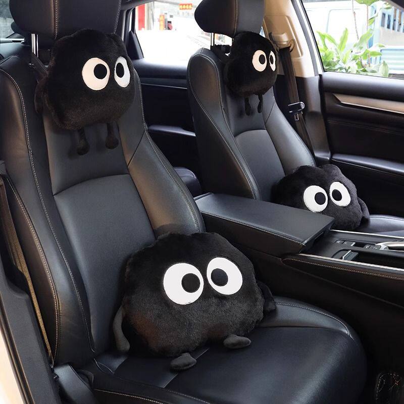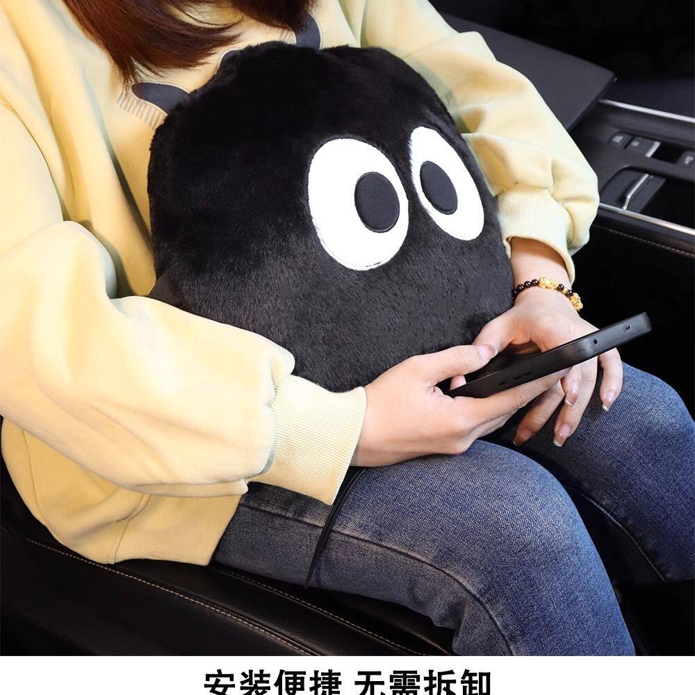 可爱煤球汽车头枕车用车内护颈座椅靠枕车载抱枕汽车通用护腰护颈